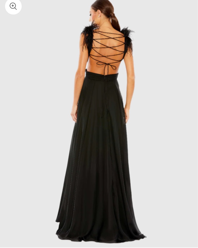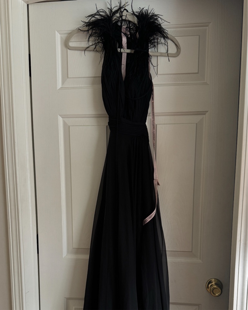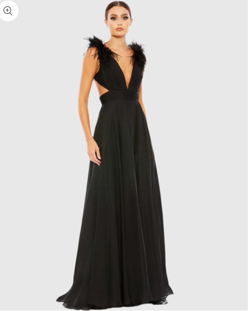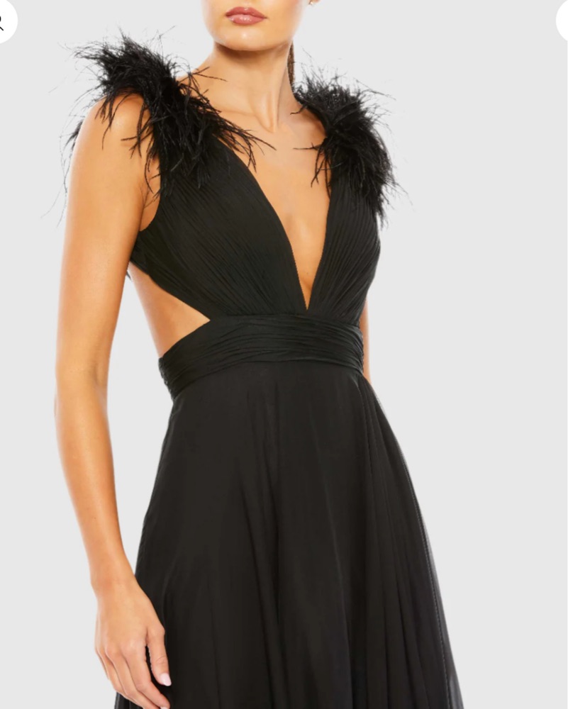 Mac Duggal Black Plunge Ostrich Feather by Mac Duggal - Pickle