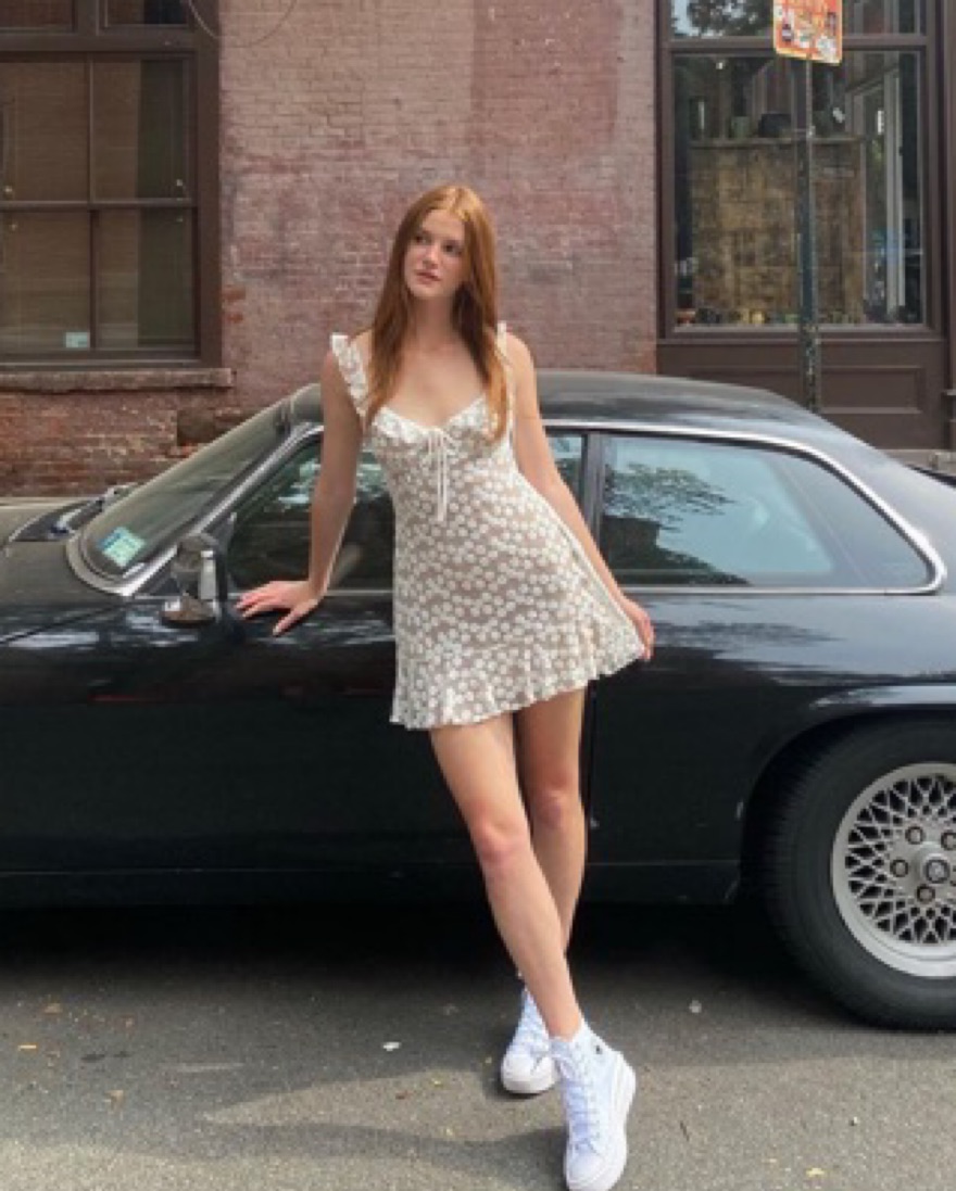 Majorelle, sunbeams dress in white, super cute for spring/summer