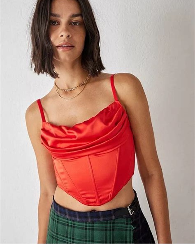 UO Lexi Satin Cowl Corset Top by Urban Outfitters - Pickle
