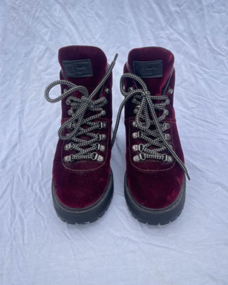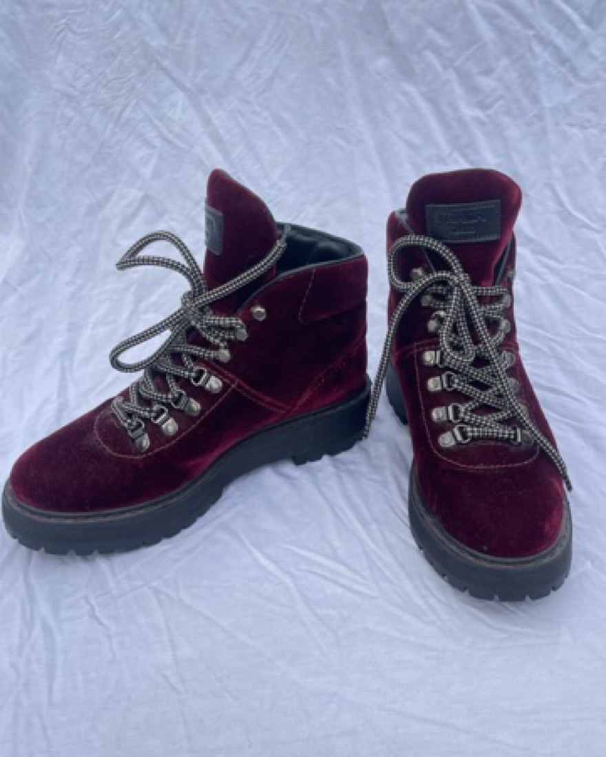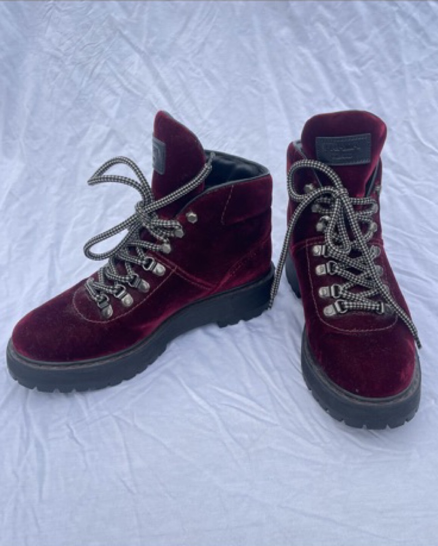 Cool twist on classic boots, very comfy. Size 39, fits true to size. Pre worn, some minor scuffs on velvet that aren’t really visible (see pics)