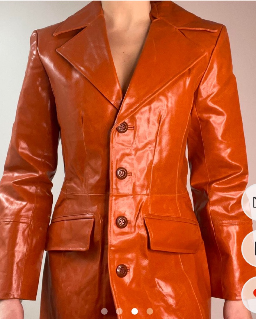 bought NWT from the 70s, unreal. fits a 6-10 best, cinches elegantly in the waist when buttoned. a fun retro statement piece that i often wear with jeans and fun shoes