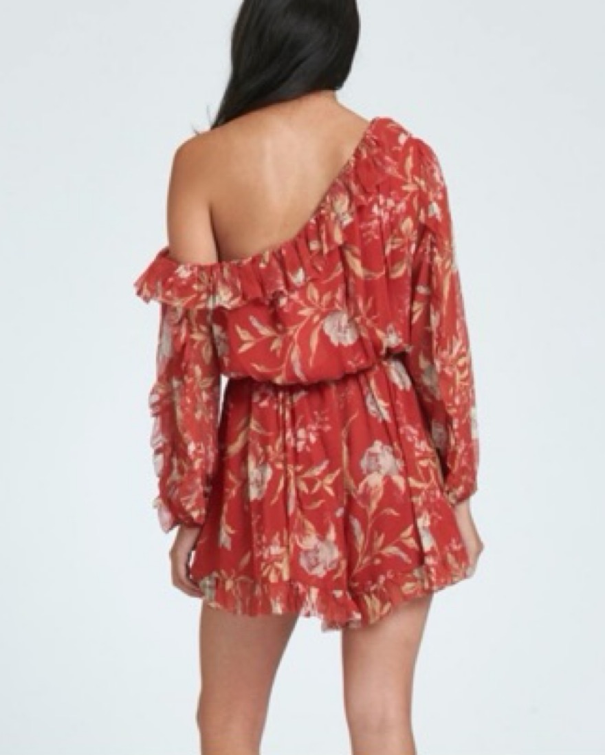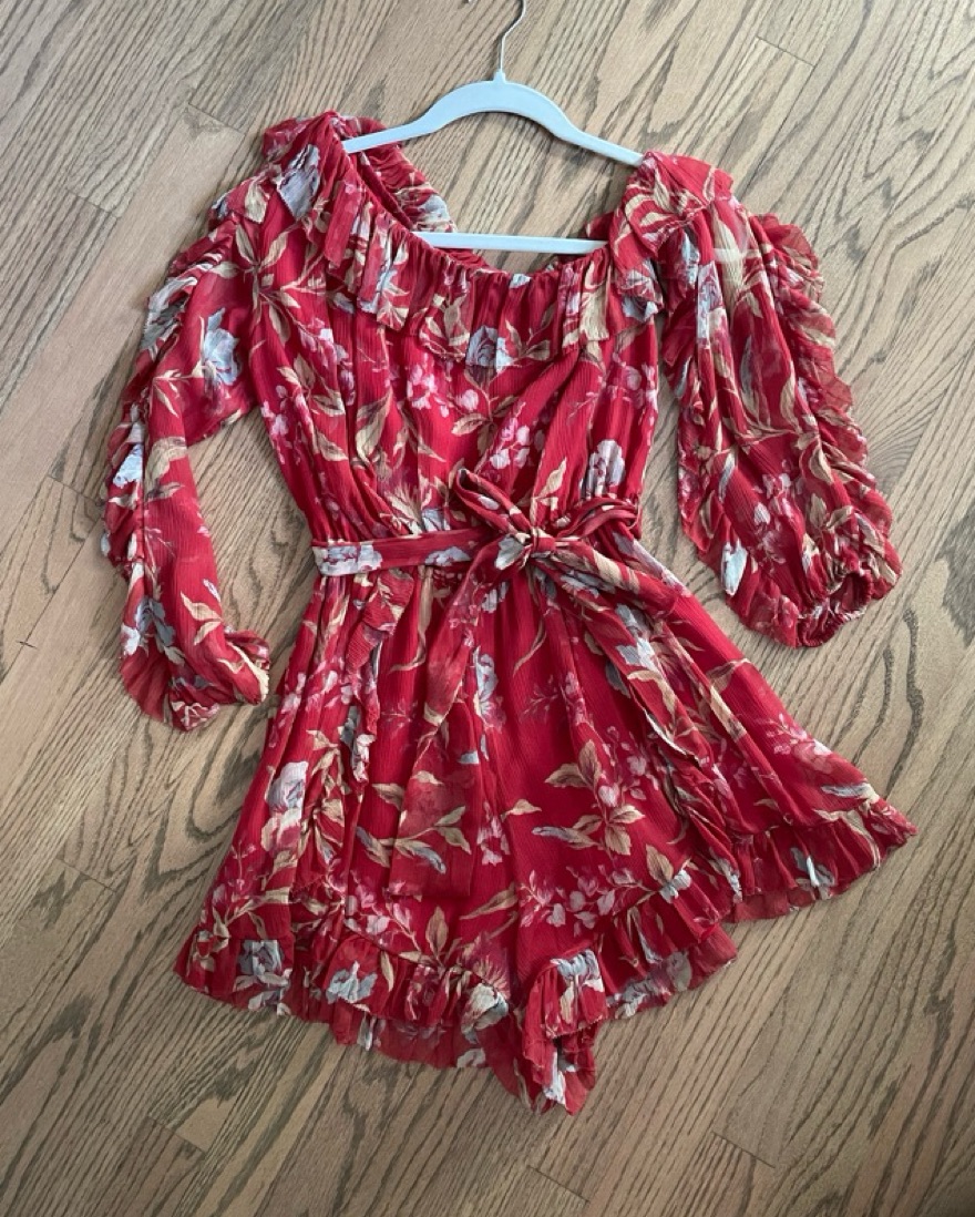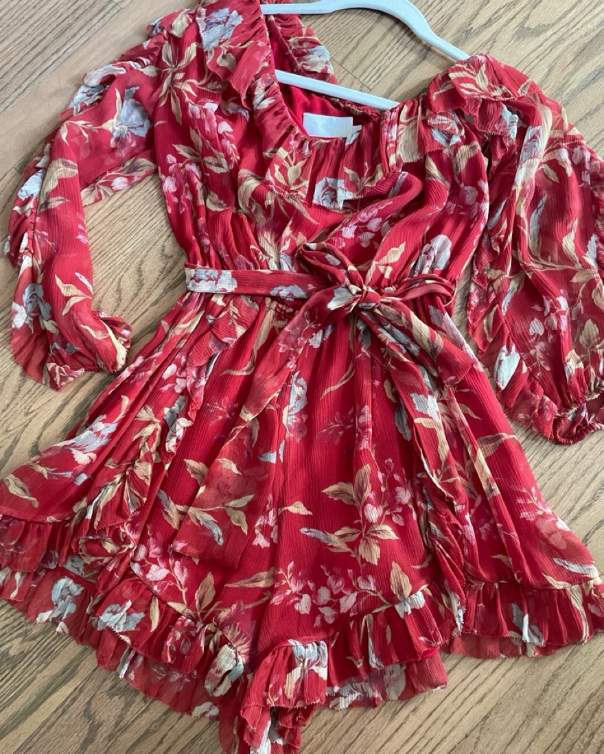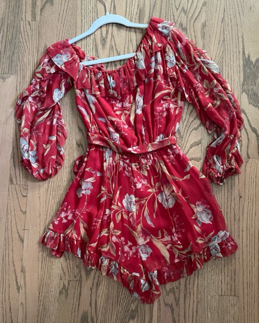Zimmermann Corsair Iris playsuit in excellent condition. 100% silk. Size Zimmermann 0P, fits true to size, ideal for petite size 00-2. Features off shoulder neckline, elastic waist with detachable silk belt sash (included), long sleeve with elastic wrist. Pull on style. Please return clean.