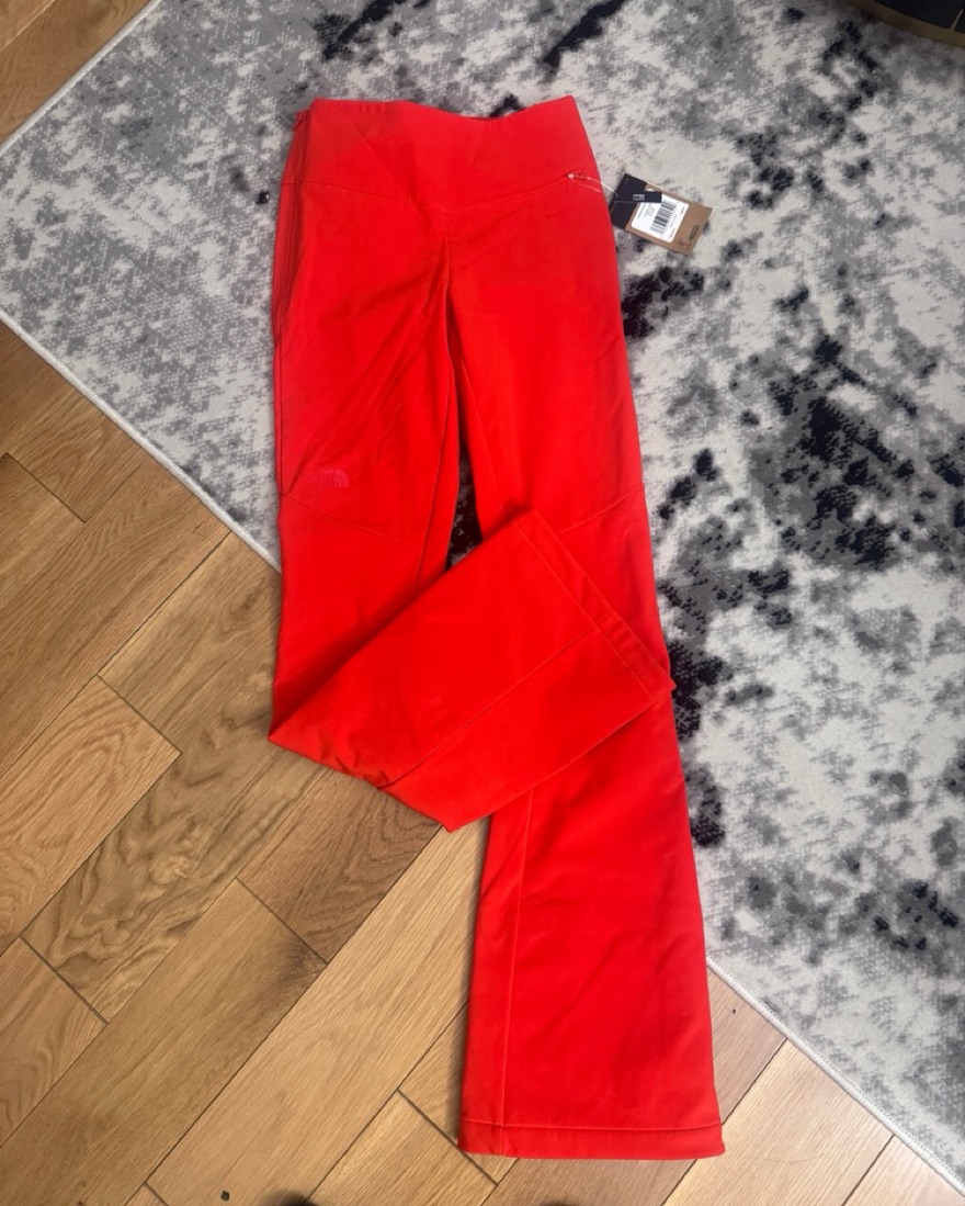 Very flattering ski pants in fiery red. Never worn and comes in Long, perfect for anyone over 5’8”