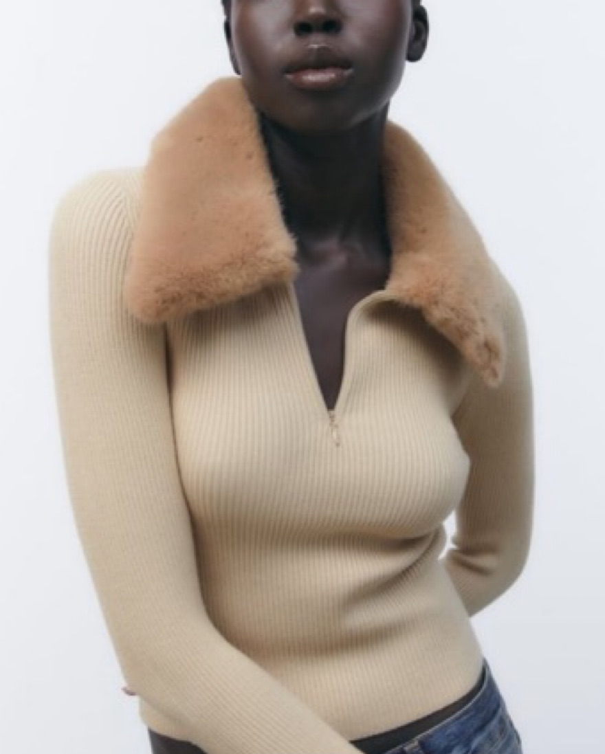 Zara fur sweater / fur collar sweater. Tags: perfect moment, moncler, sweaty betty, canada goose, bogner, mackage, ski trip, snowboard, ski onesie, apres ski, goldbergh, cordova