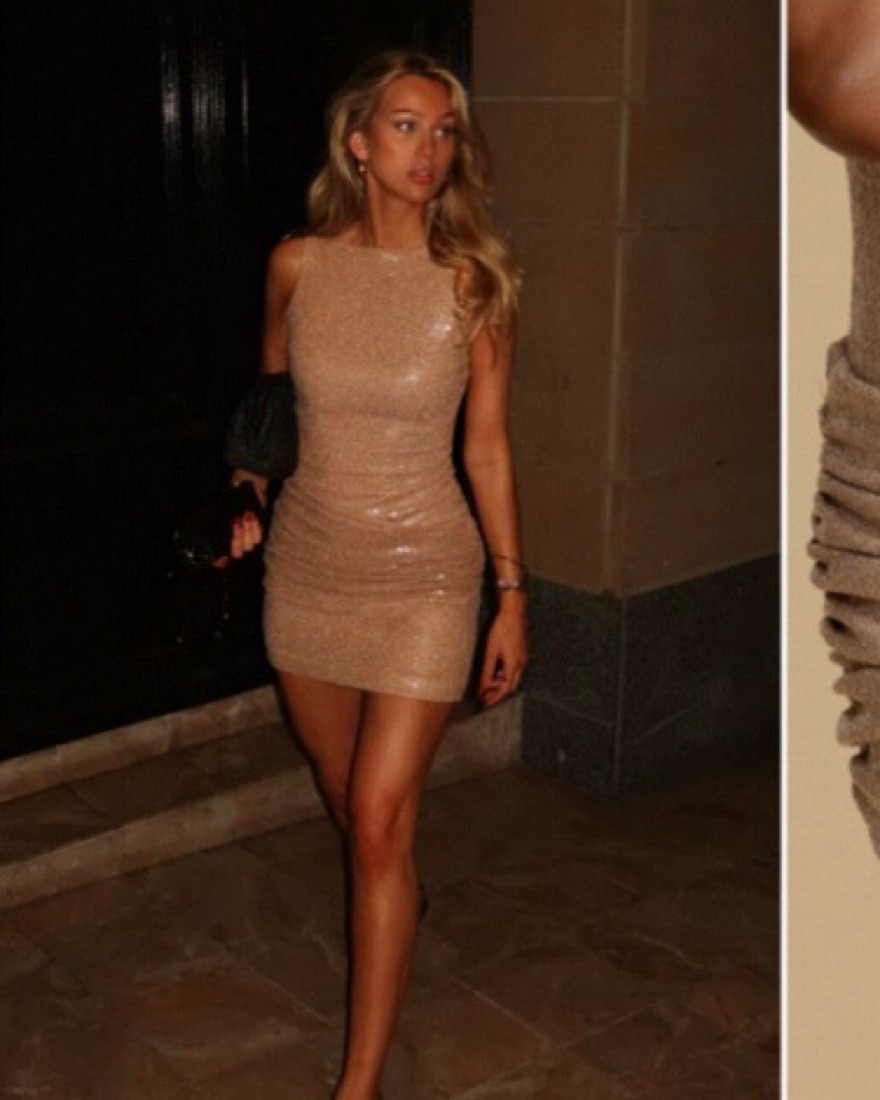 Beautiful sparkly champagne gold colored dress! Perfect for cocktail attire or a fun night out. Sequin/ sparkly