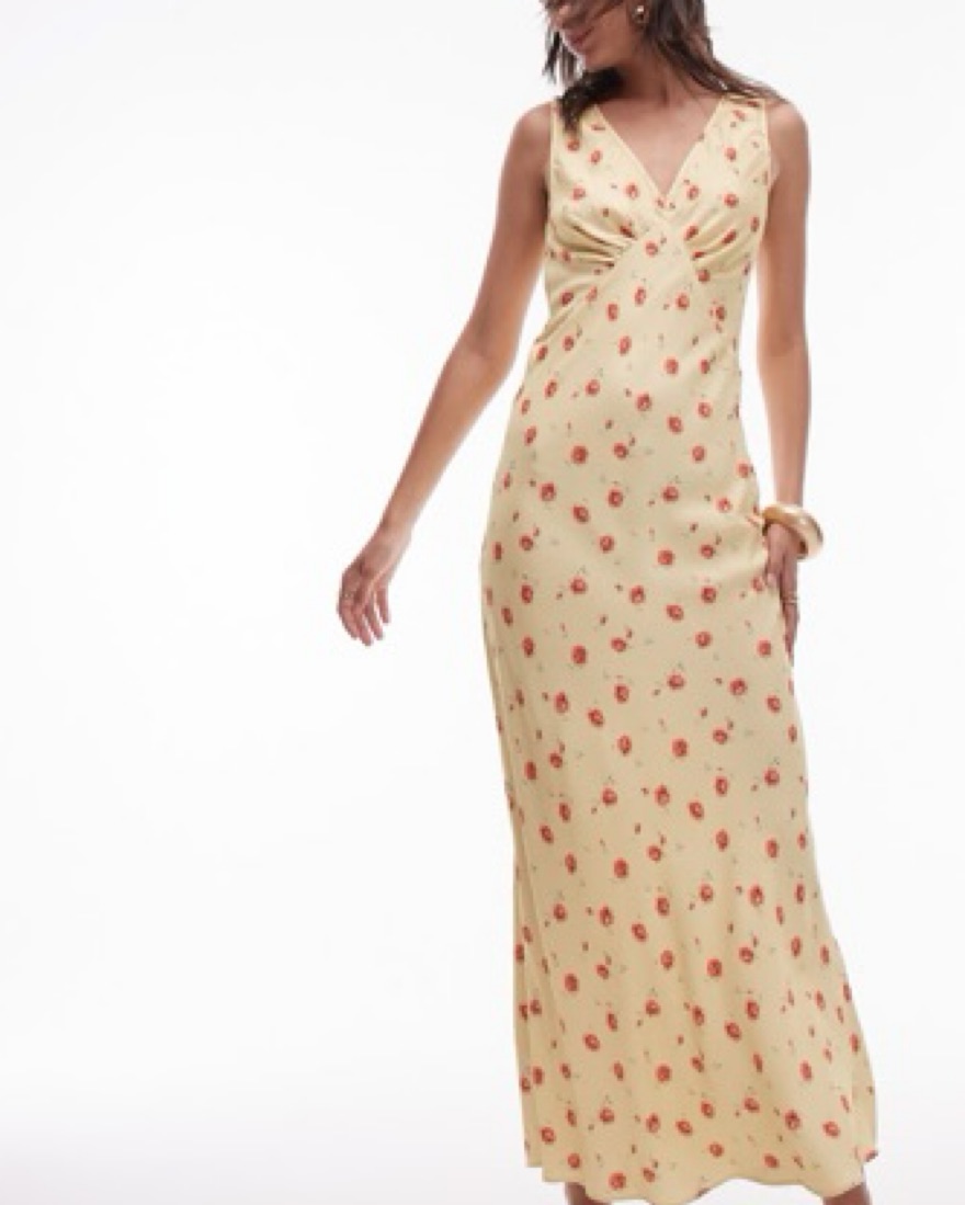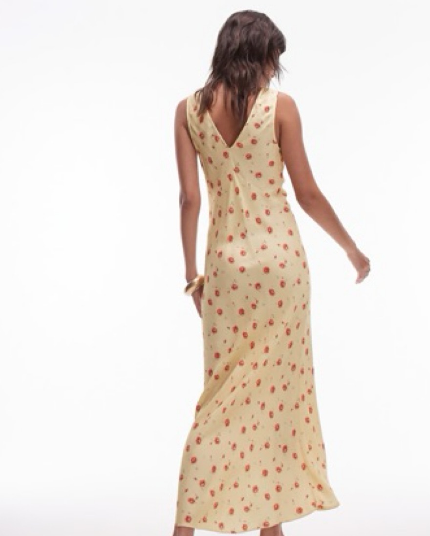 Topshop v neck midi slip dress. In yellow and red rose print. Size 6 but would fit 4-8!