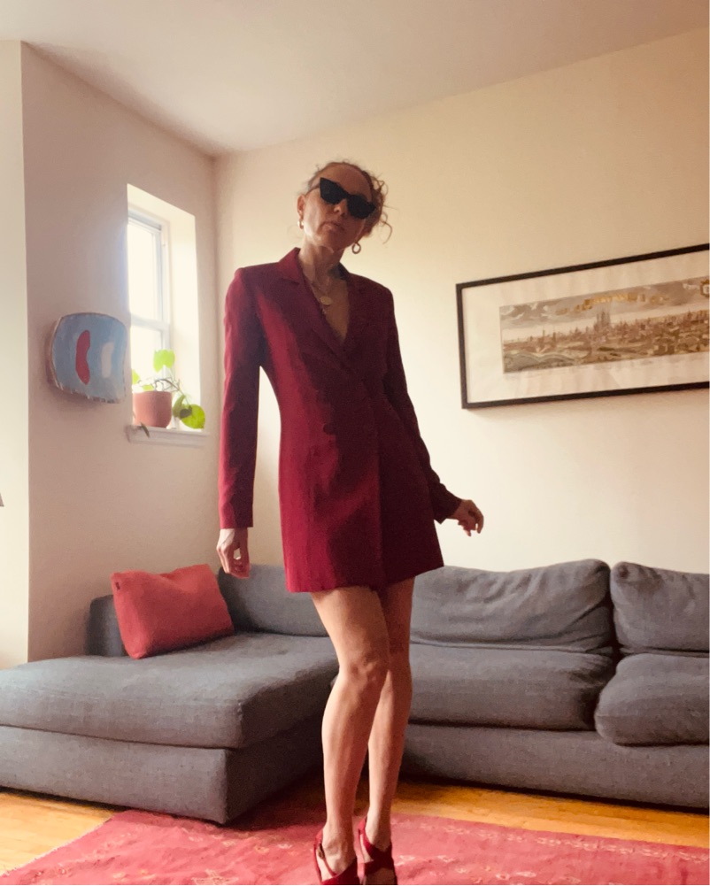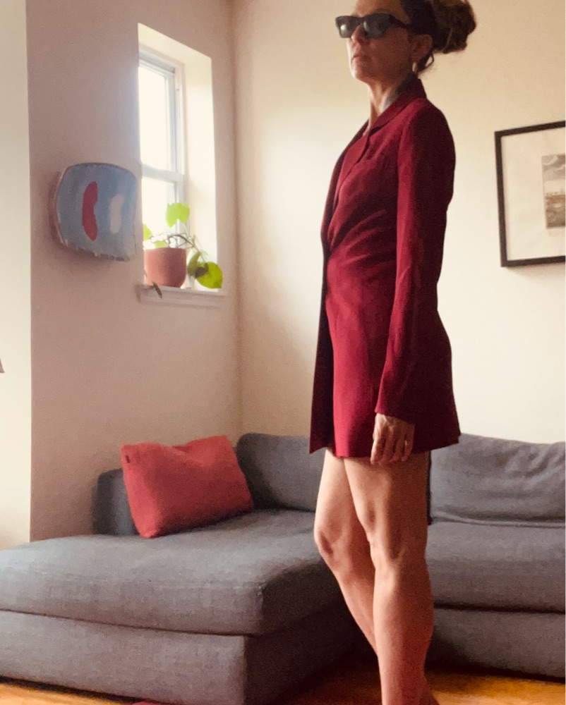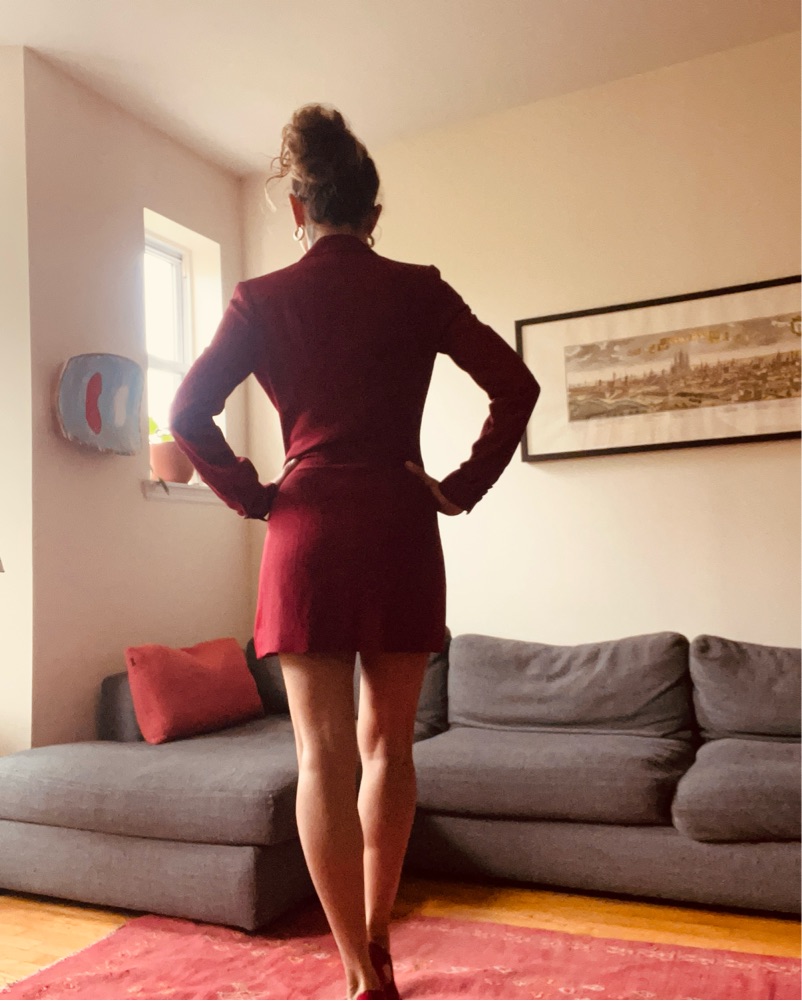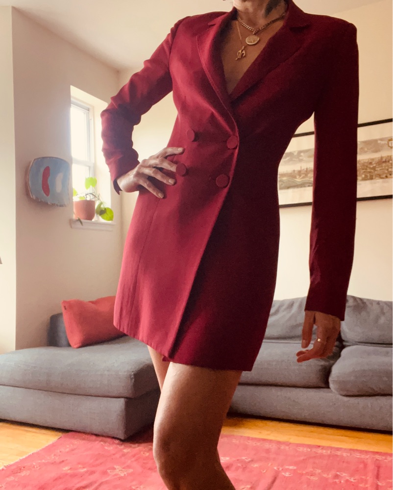 This bold and fashionable red blazer dress is perfect for making a statement at any event. Pair it with sleek heels for a chic, sophisticated look.