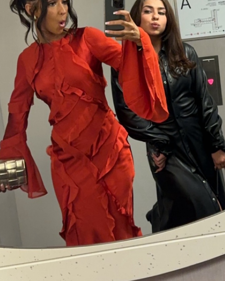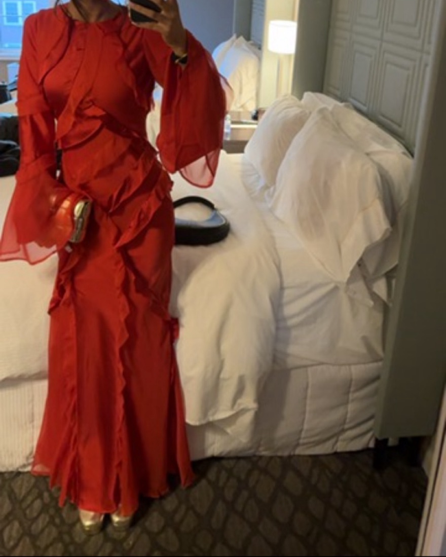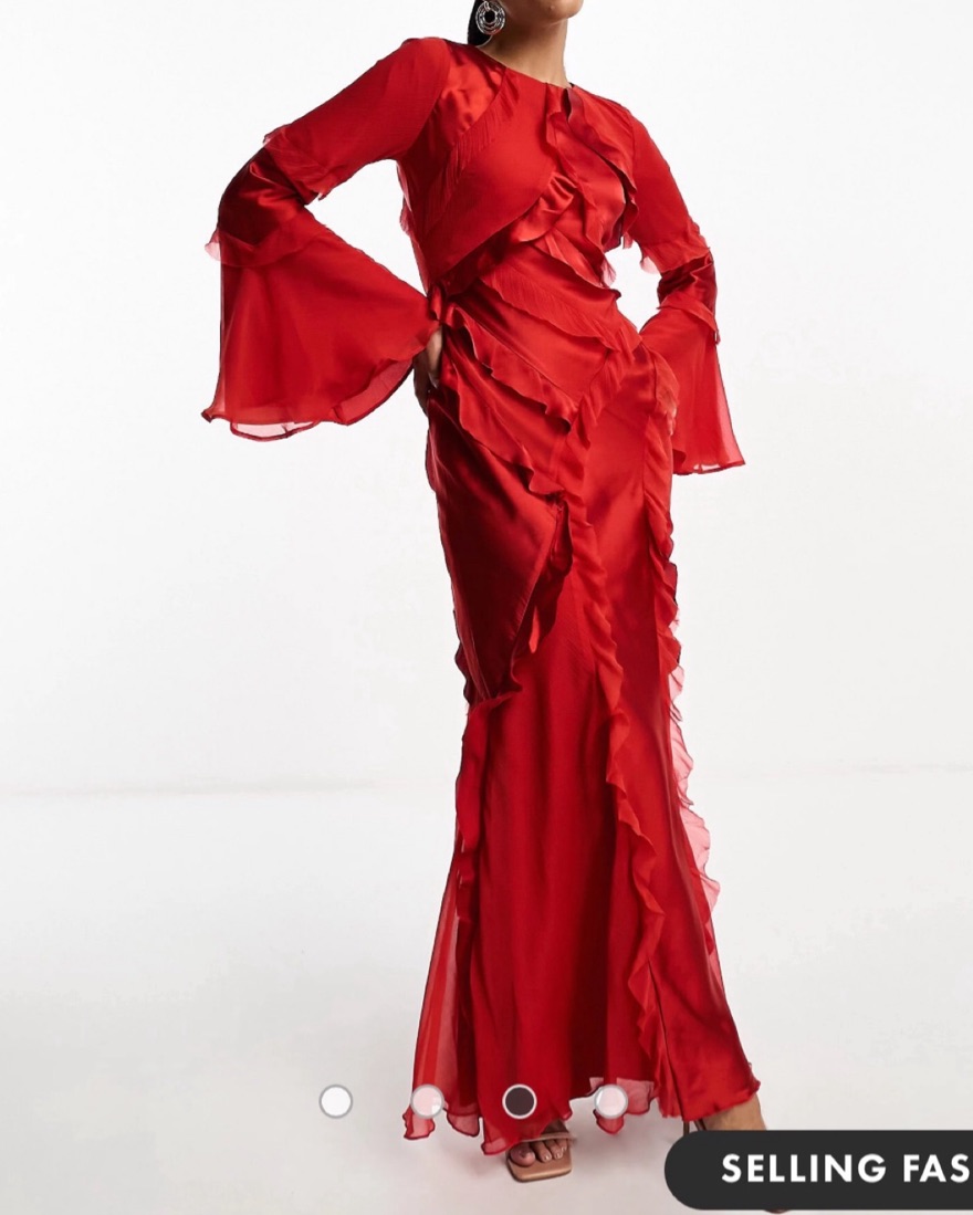 Asos Red ruffle formal long sleeve dress, very flattering perfect for holiday parties/ weddings
