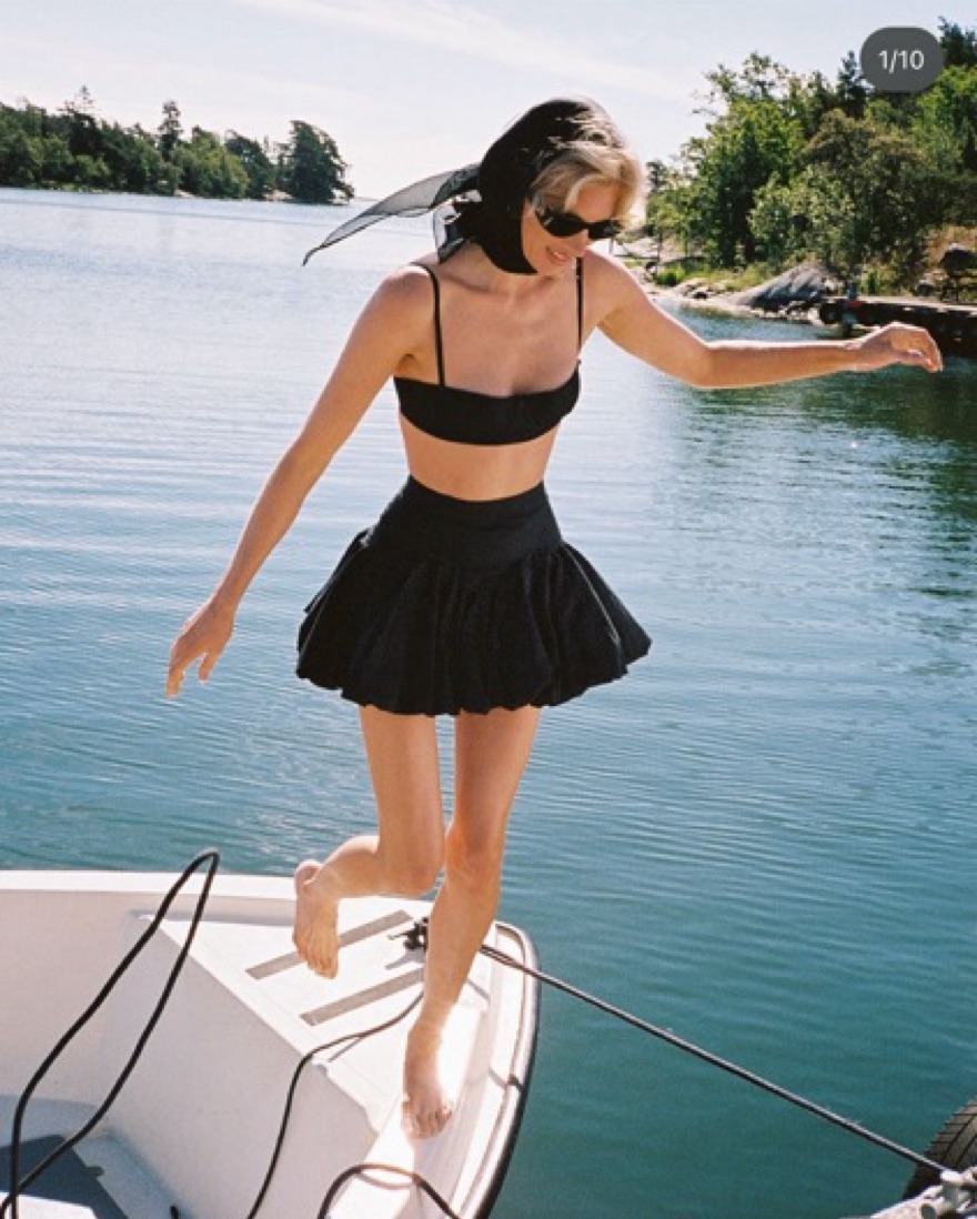 Helsa - Scandi Summer Poplin Bubble Skirt • Poplin Bra • Matching Set Black version (white only shown for styling inspo)