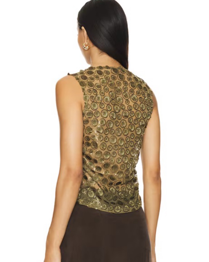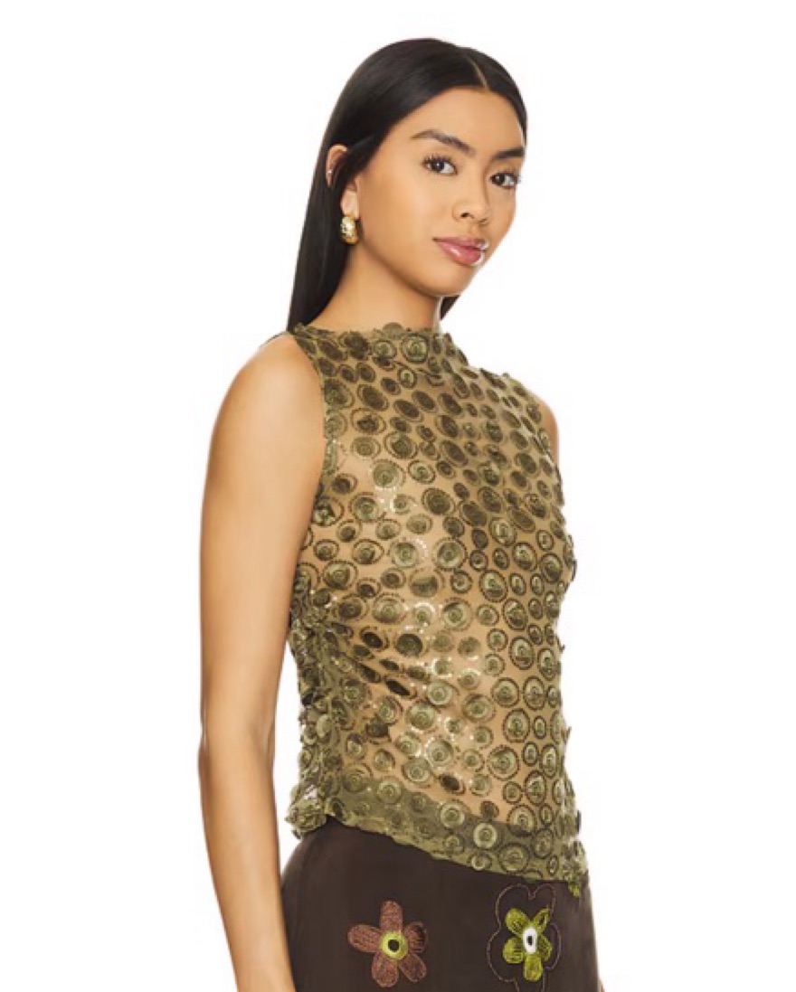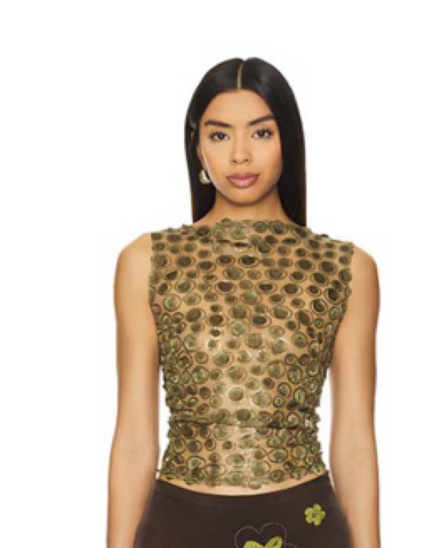 So cool great top. I also hand off w my chocolate skins tank. It fits perfectly under if you dont want the sheer aspect. Must dry clean/ wash before returning