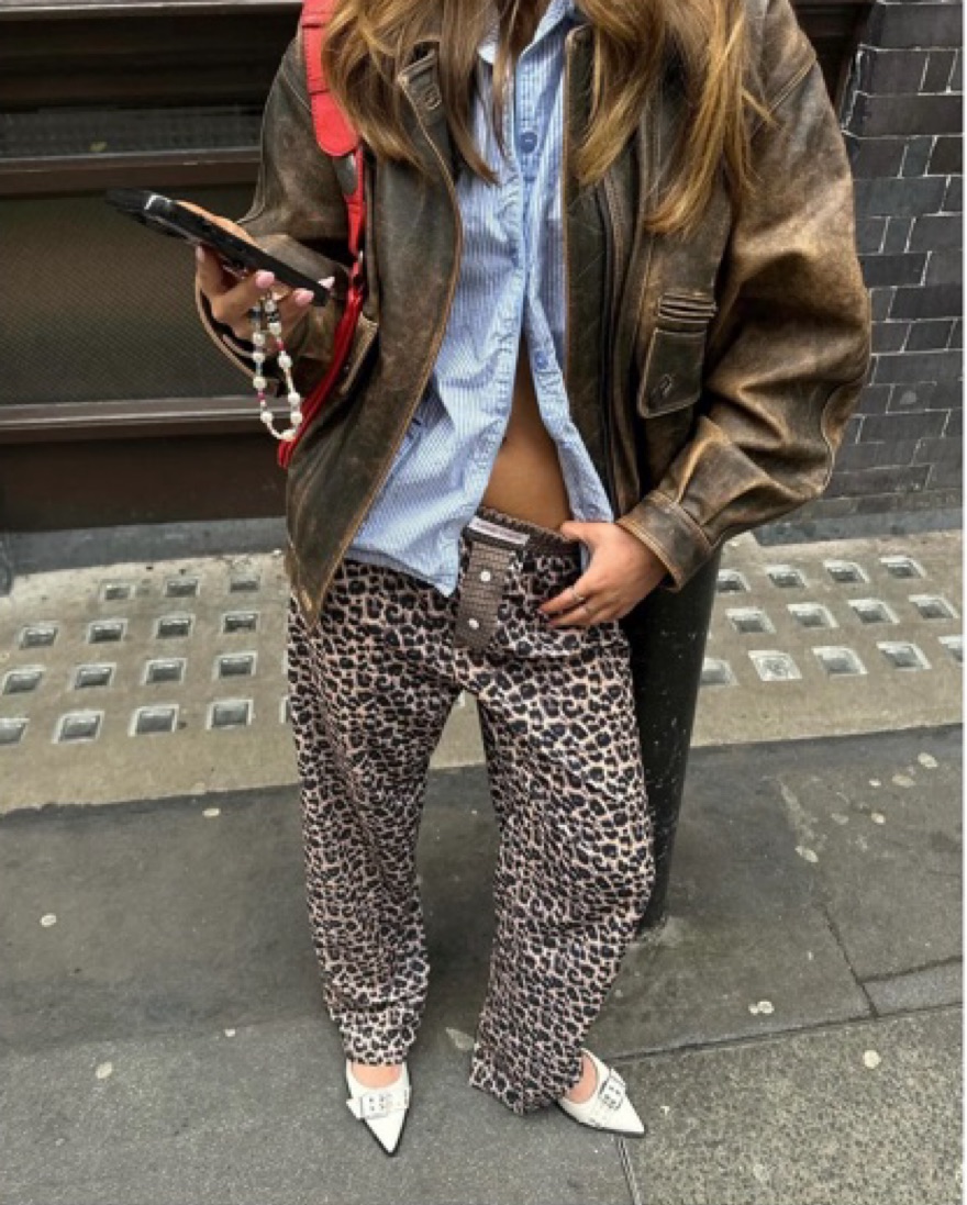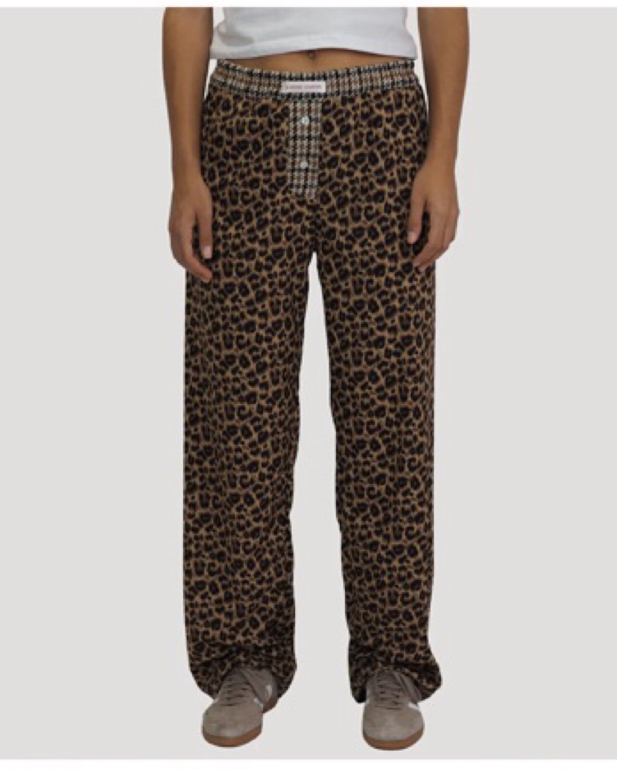 Inspired by Nicolas Cage in "Wild Hearts", our first leopard print long. Featuring a 100% polyester crepe body, 100% cotton detail and houndstooth waistband