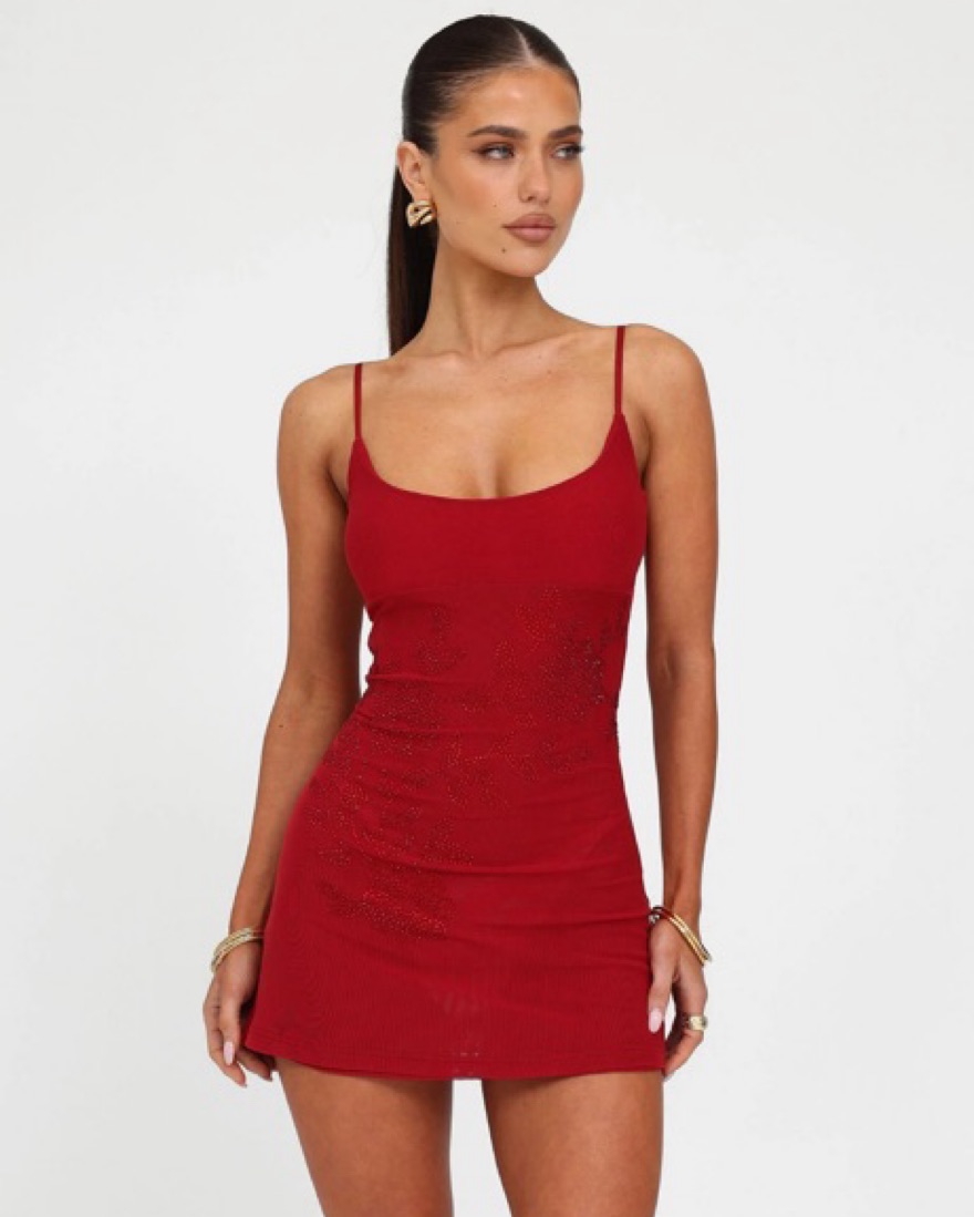 Red Embellished Mini Dress by Tiger Mist - Pickle