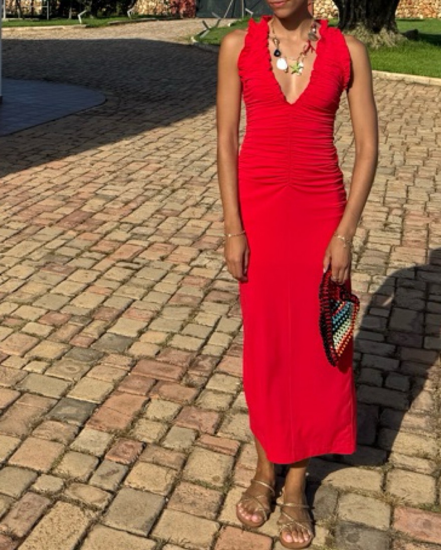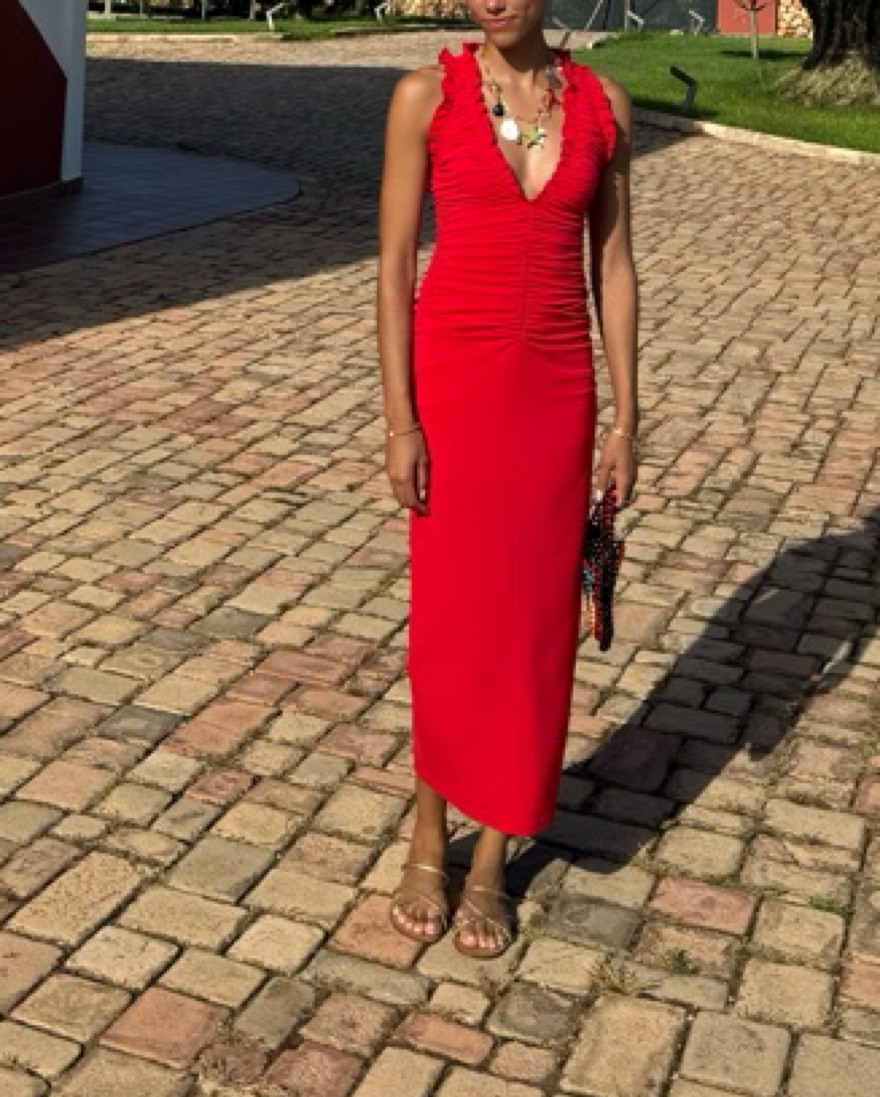 red zara bodycon dress - stretchy fabric. warning:neckline is low so you will need tape or nipple covers or both. cute for valentine’s day or vacation