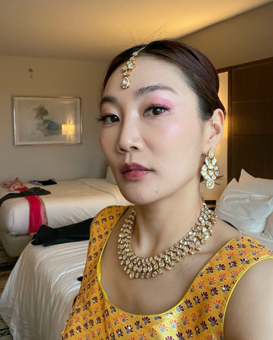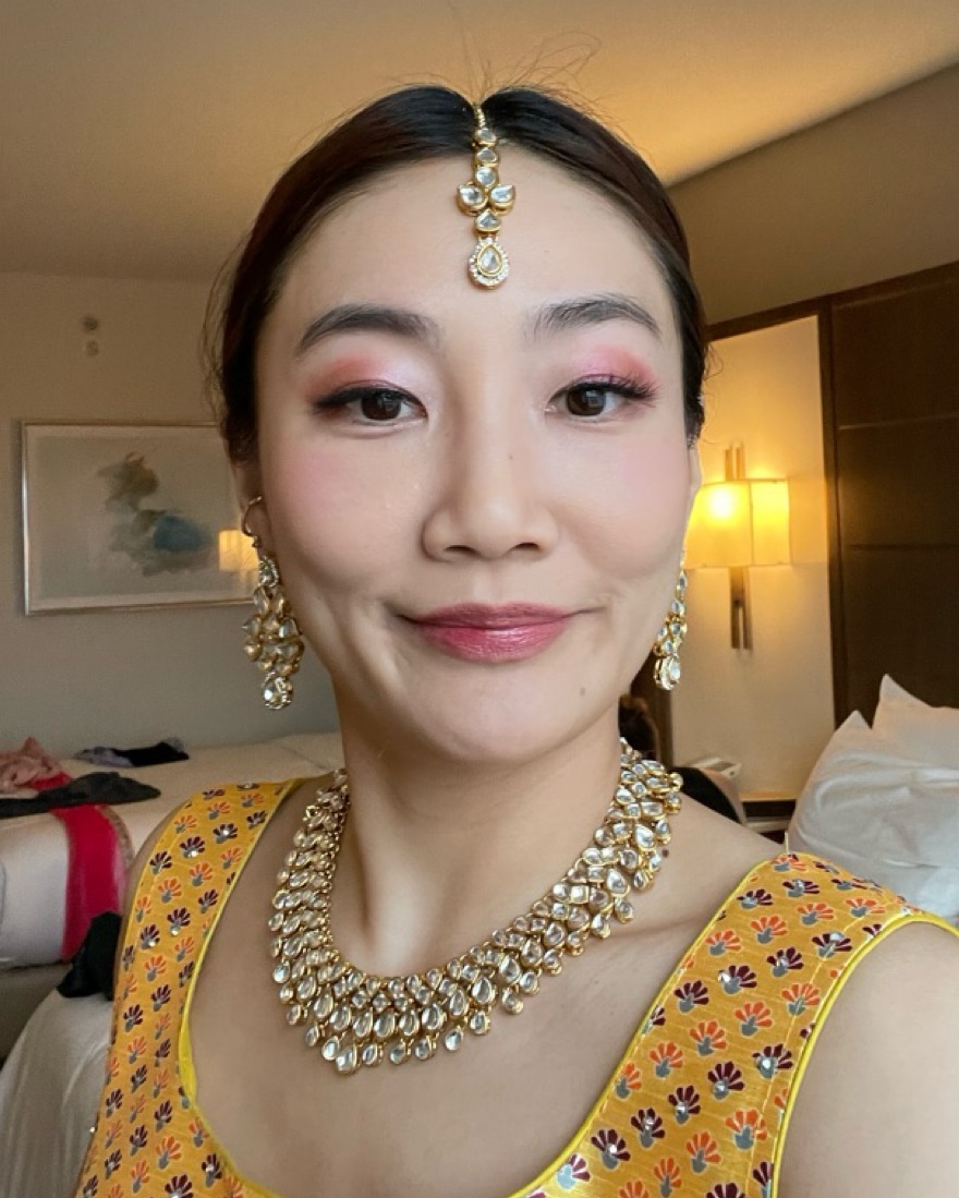 Wedding guest jewelry! Includes maang tikka for hair, necklace, and matching earrings. I got so many compliments from Desi aunties and guests! Glam enough to be worn for sangeet but simple enough to style with different clothing for each event. Necklace is adjustable.