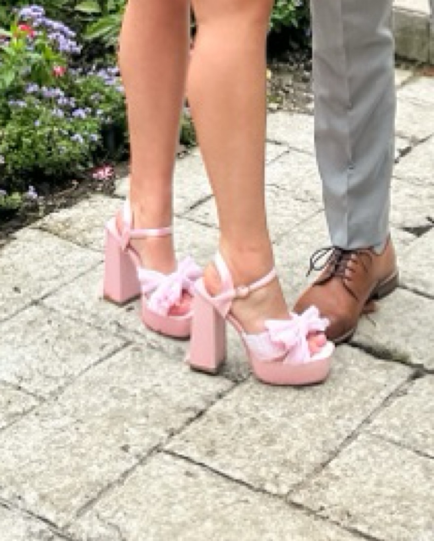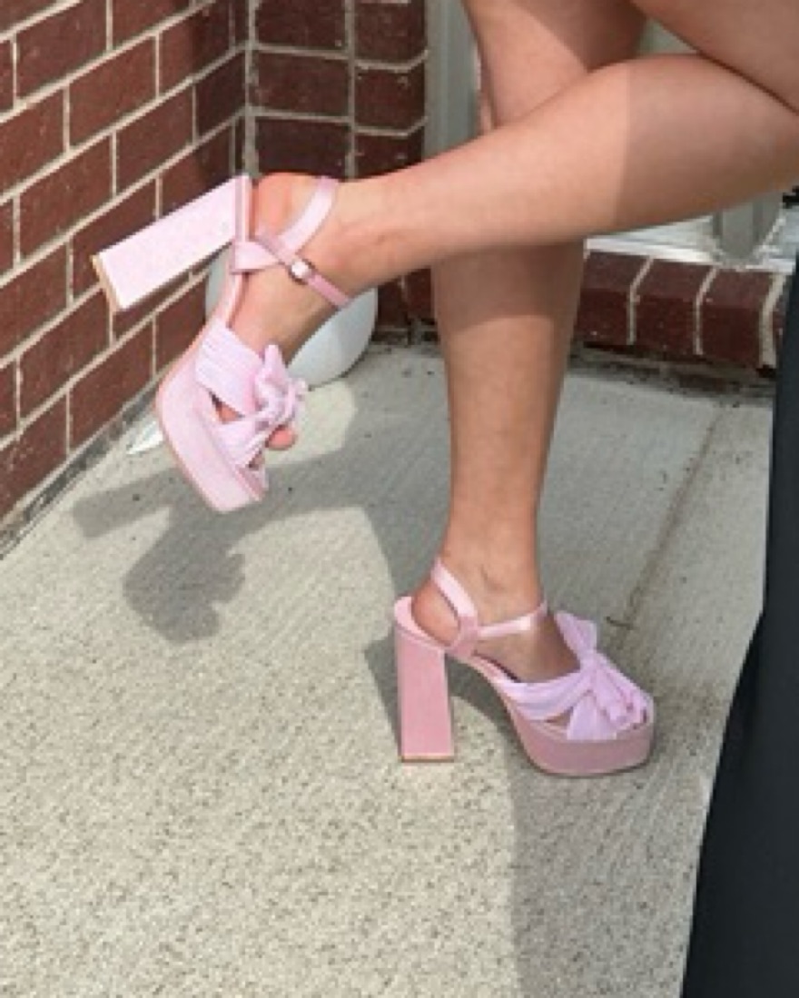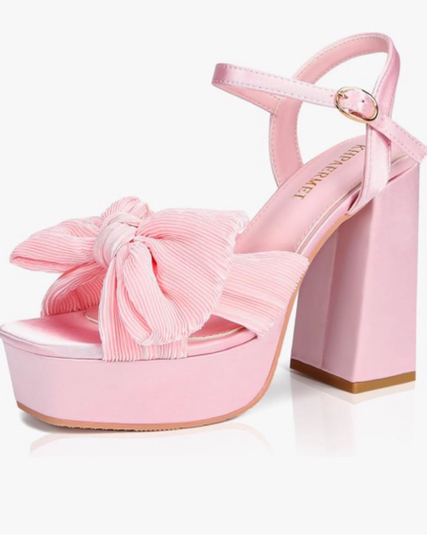 Adorable pink bow heels. Block heel with platform, great for formals or events. Very comfortable and easy to walk In.