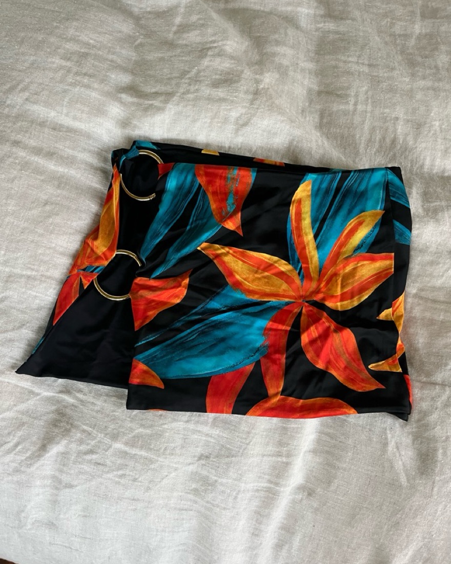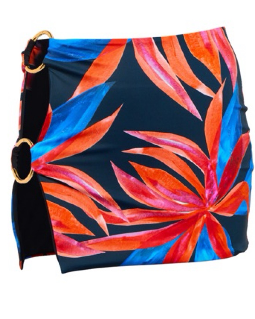 Designer Louisa Ballou Mini Skirt with Gold hoop details. Size XS - black orange and blue colora