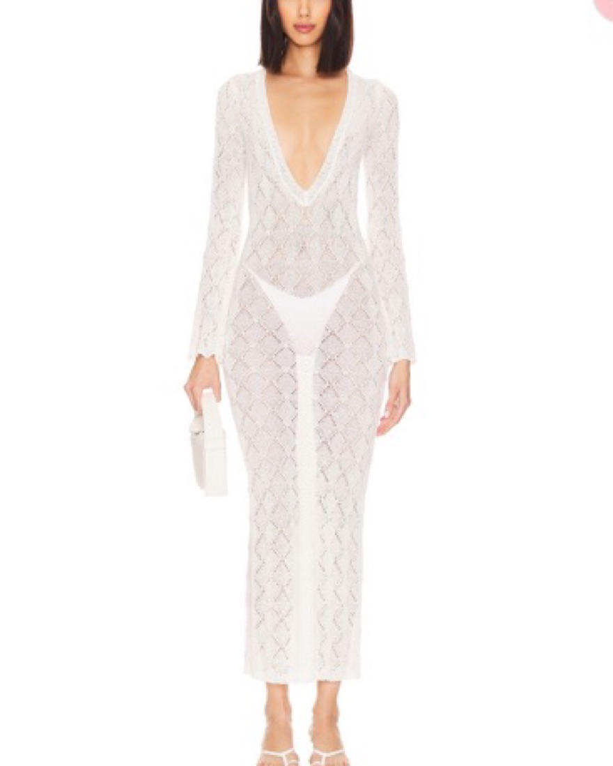 Revolve Deep V Maxi Dress by More to Come - Pickle