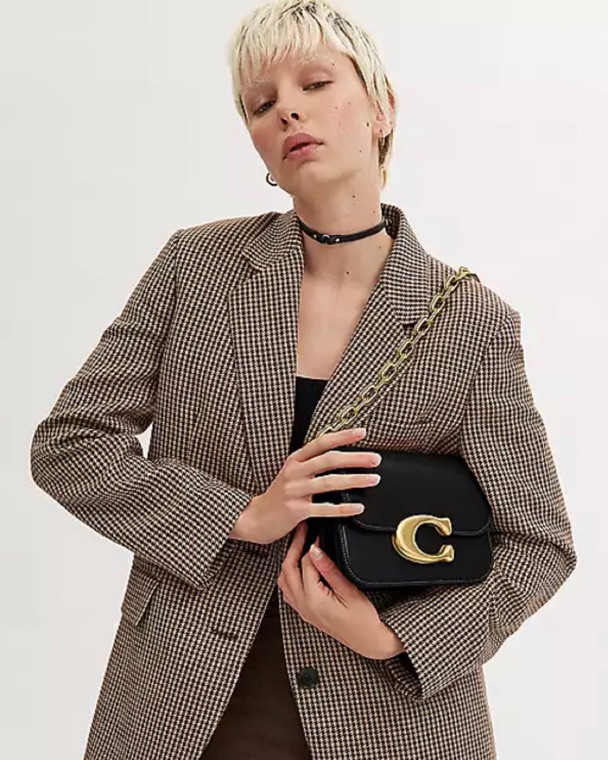 *Brand New* Luxe refined calf leather Inside zip and snap pockets Two open compartments Magnetic snap closure,leather lining Outside open pocket Detachable strap with 21 1/2" drop for shoulder or crossbody wear