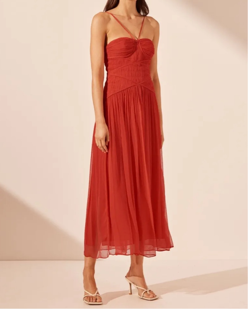 Shona Joy Margot Ruched Midi Dress by Shona Joy - Pickle