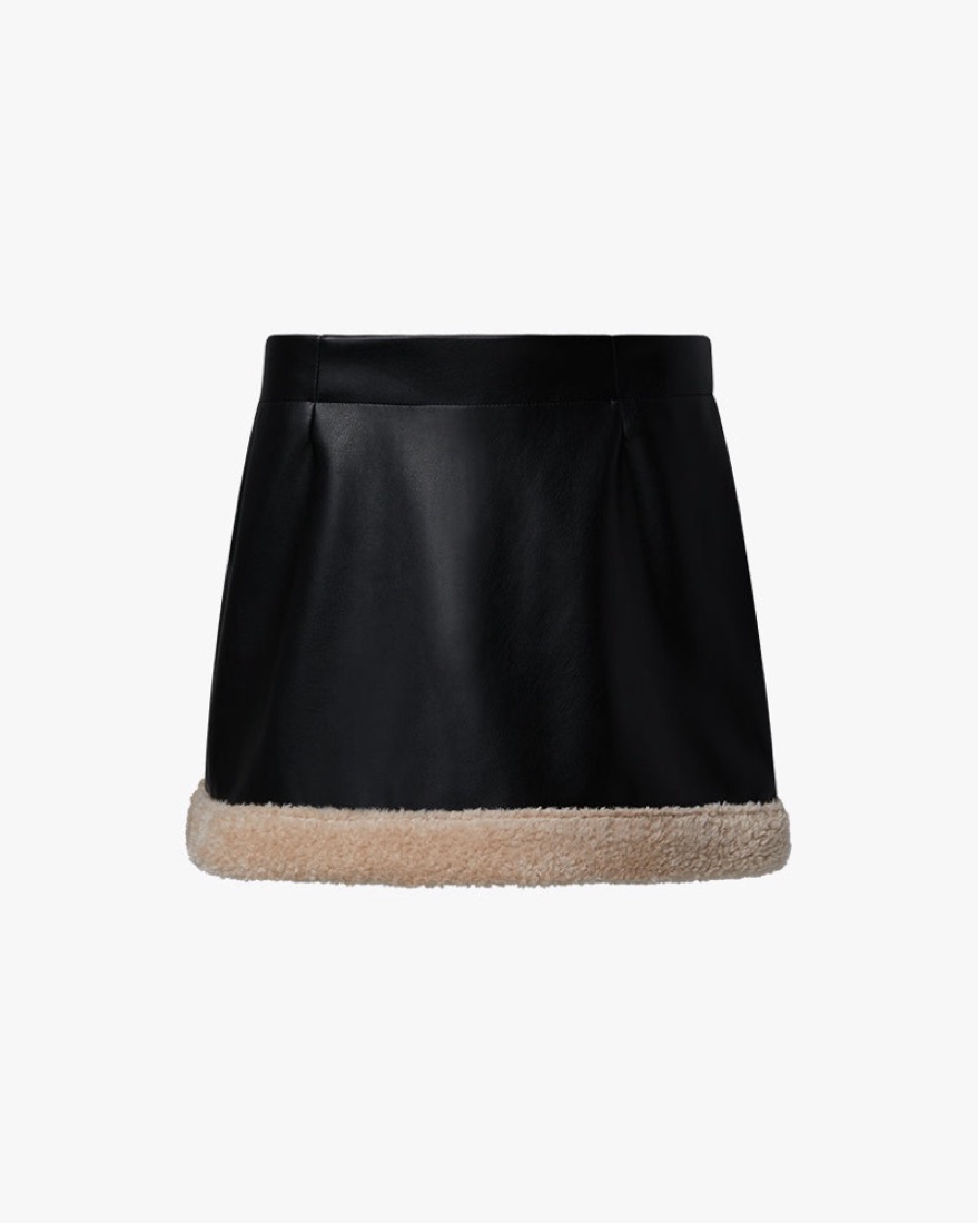 Fits like a 2/4 … New with tags - see my closet for matching top or to rent as matching set. This mini skirt is made from vegan leather and trimmed with faux fur at the hem. A hidden zip finishes off the center back.