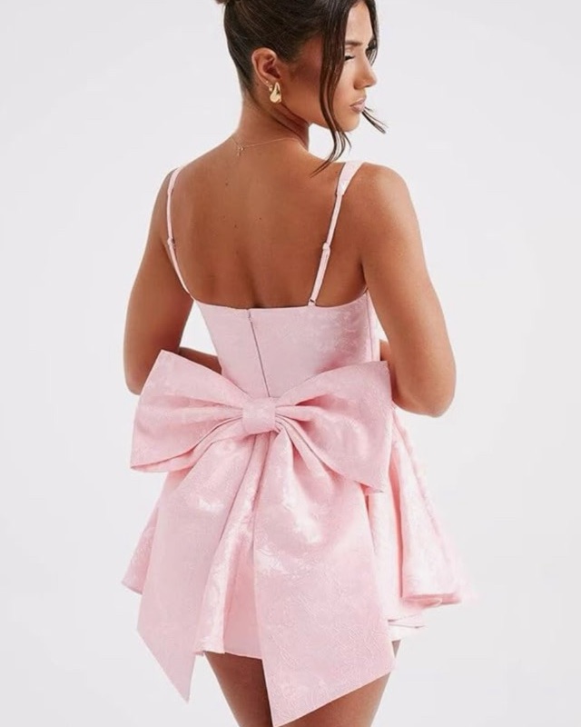 Cute for bday party, brunch, costumes, or to wear out! Handmade satin dress with removable bow and adjustable straps