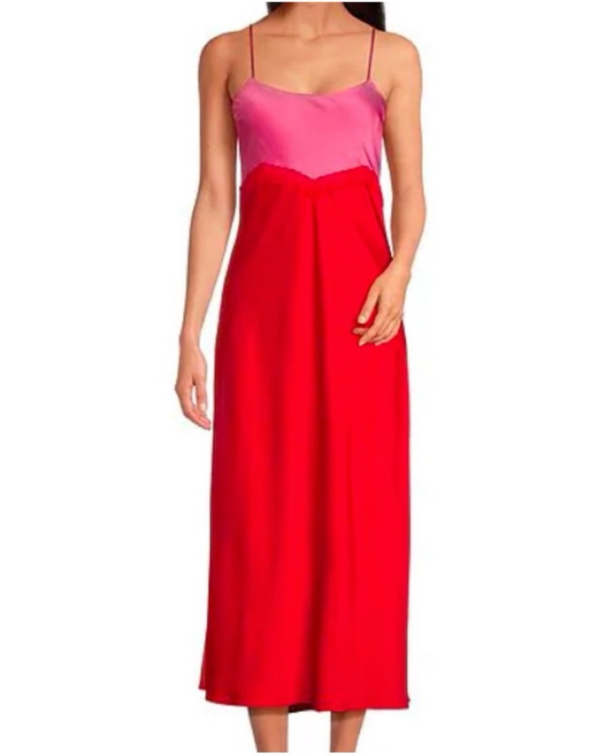 Red & Pink Satin Maxi Dress