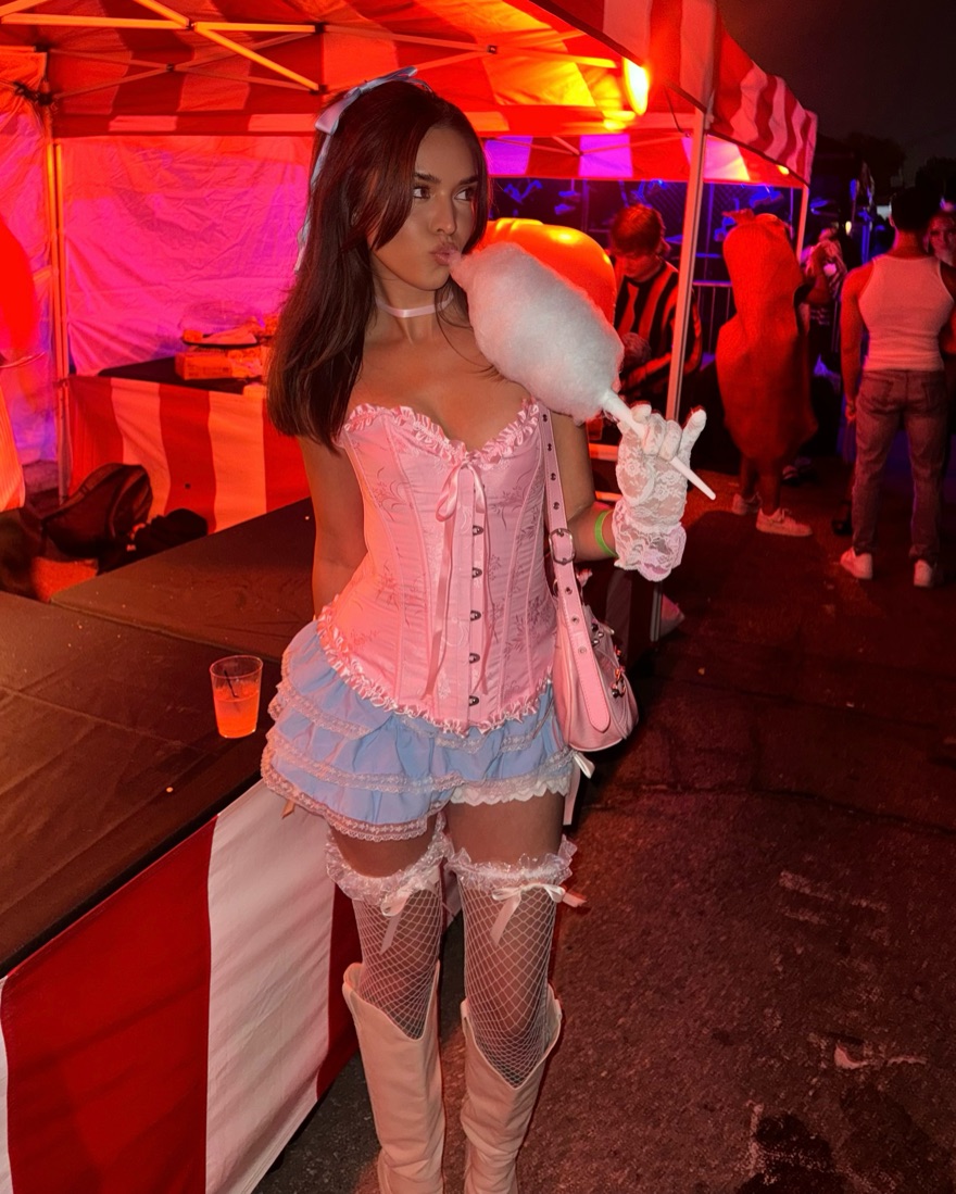 Little Bo peep costume, comes with gloves, bow leg fishnet tights, hair bows, choker, corset, bloomer shorts
