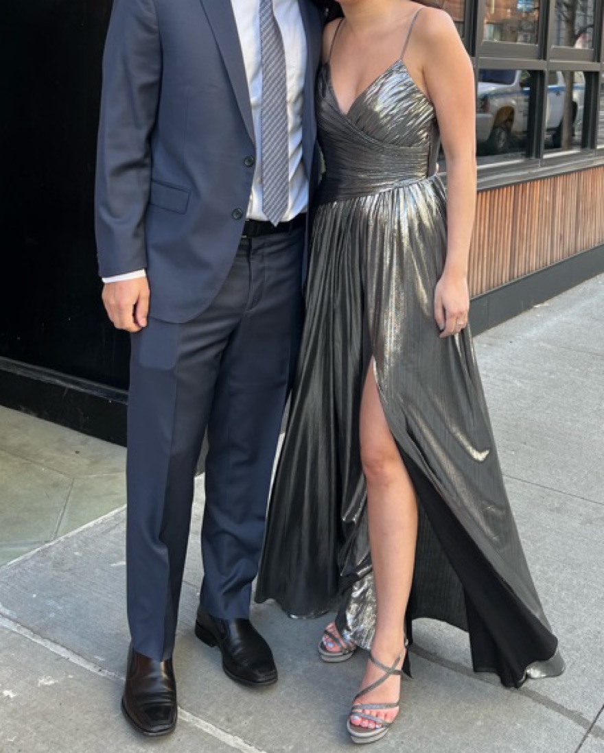 Altered to fit in between a size XS and S, and shortened to my height (5’ 3” + 4 inch heels)