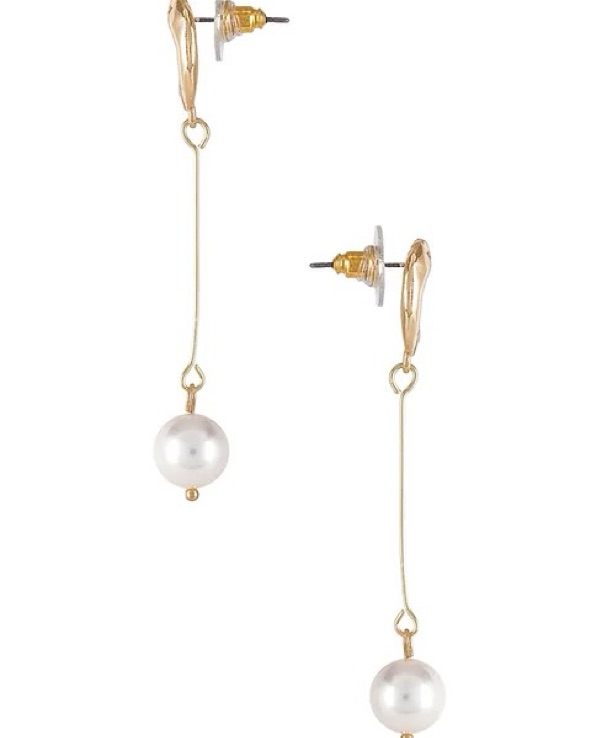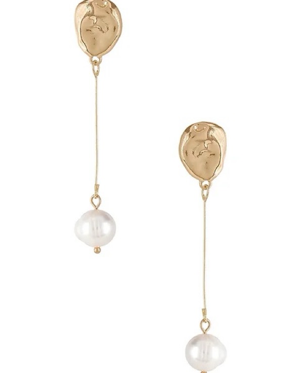 Gold tone earrings Post back closure Faux pearl embellishments Measures approx 2.5" dangling Lightweight