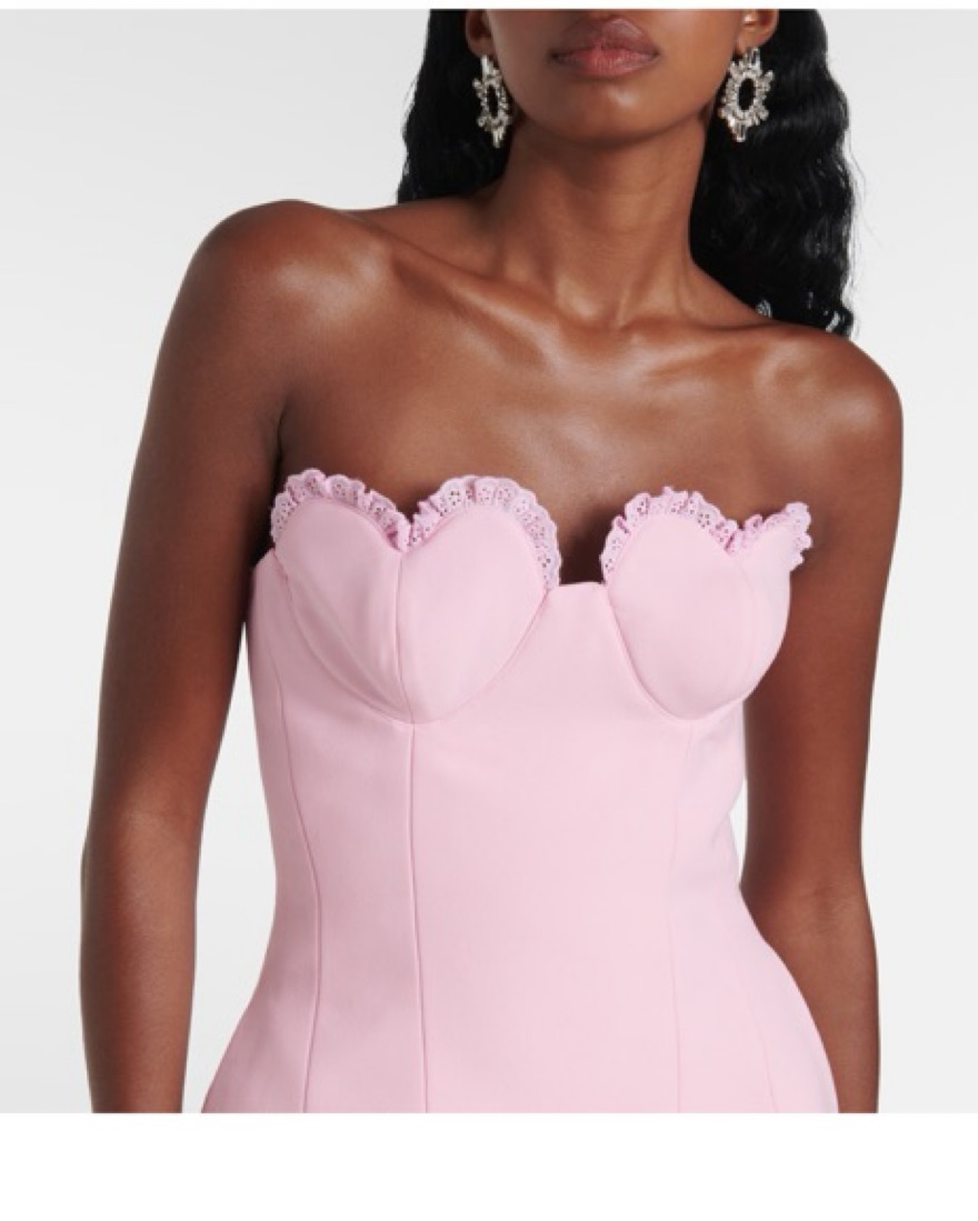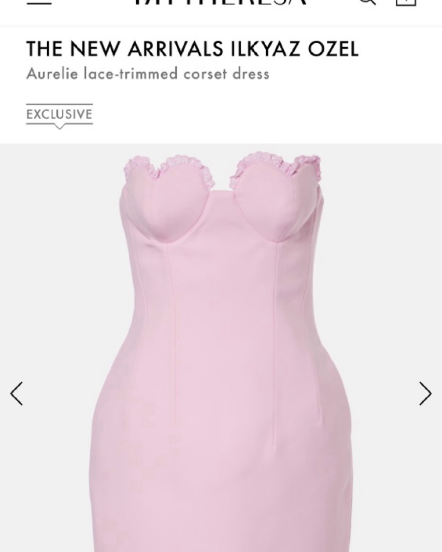 The New Arrivals Ilkyaz Ozel Aurie lace-trimmed corset dress. https://www.mytheresa.com/us/en/women/the-new-arrivals-ilkyaz-ozel-aurelie-lace-trimmed-corset-dress-pink-p00963542?dplink=true. Size 2 fits like a 0/2/EU 34!