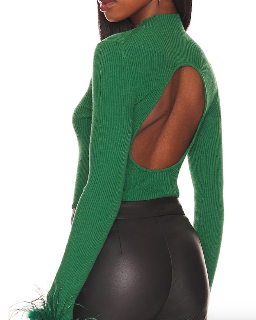 Long sleeve ribbed sweater like revolve feather top with open back. Never worn.