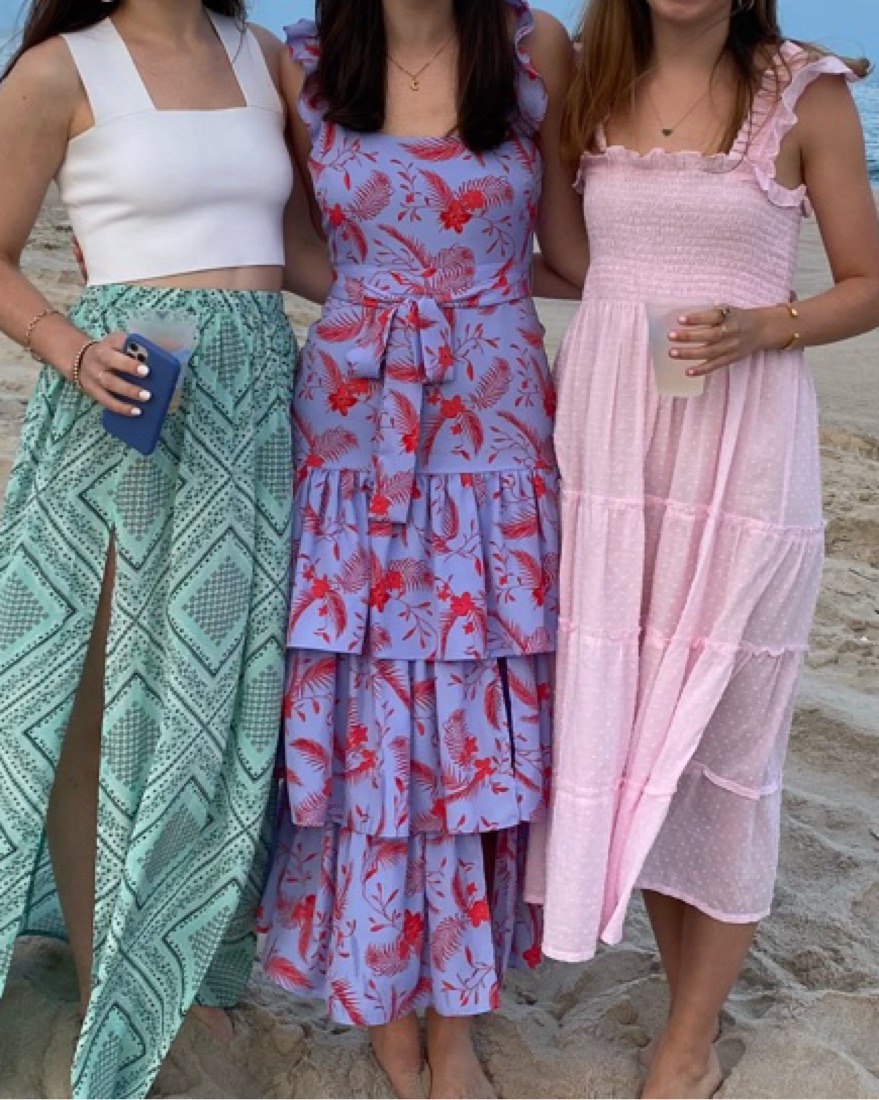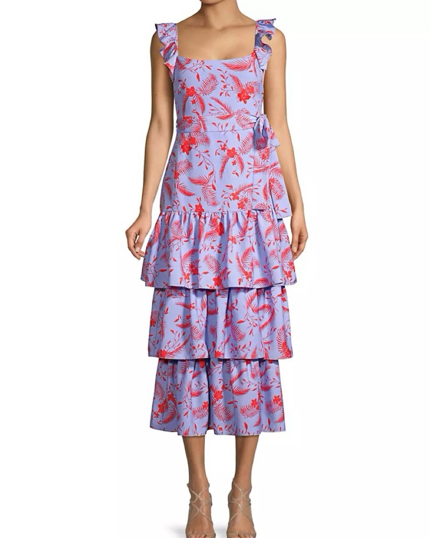 Likely Juno Floral Tiered Midi Dress in Periwinkle
