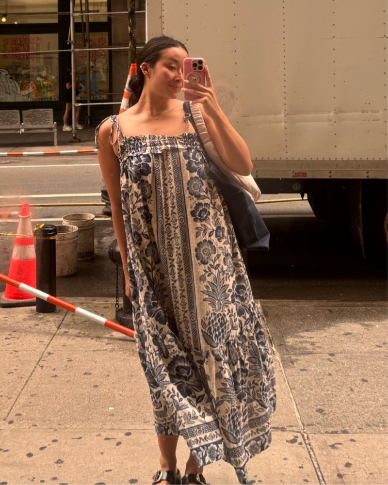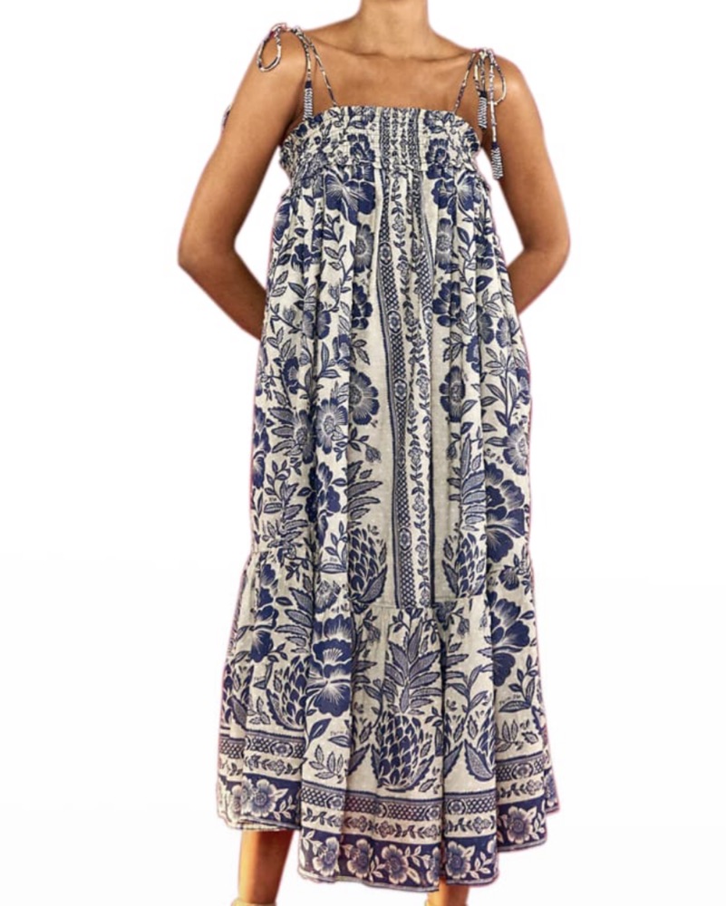 This vibrant, pineapple-print maxi dress from FARM Rio is perfect for warm-weather occasions like garden parties, beach getaways, or summer weddings.