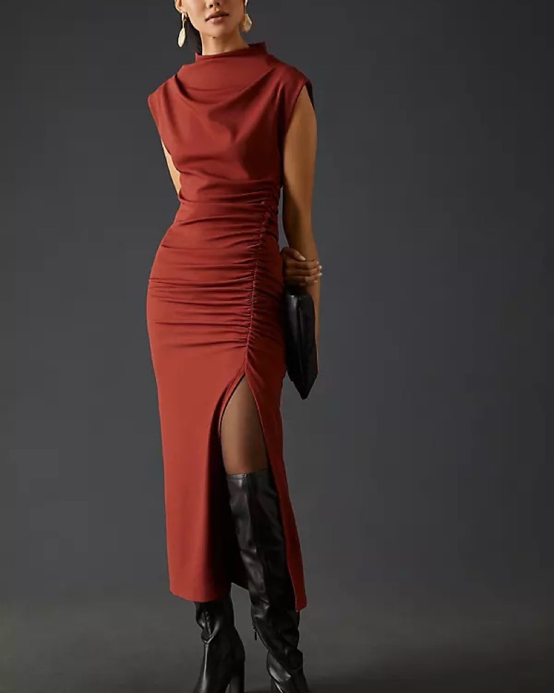 Anthropologie Maya Ruched Dress (RUST) by Anthropologie - Pickle