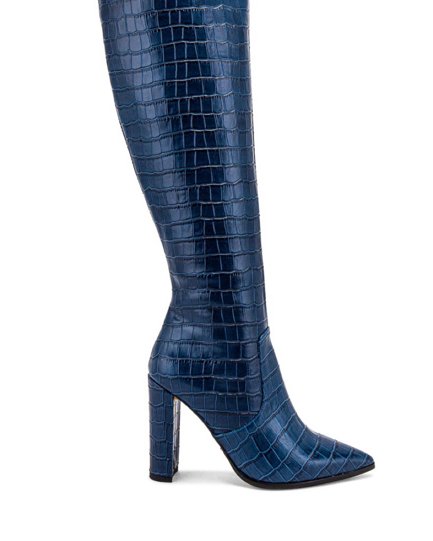 Sold out and barely worn! Elevate your look with these stylish Tony Bianco Lucille boots in a striking blue croc-embossed finish. Pair with a fitted midi dress for a chic, going-out ensemble.