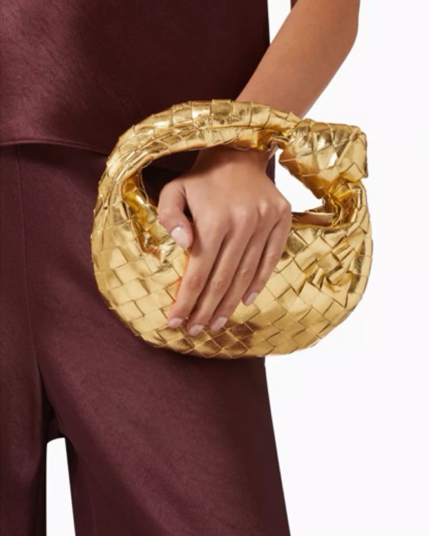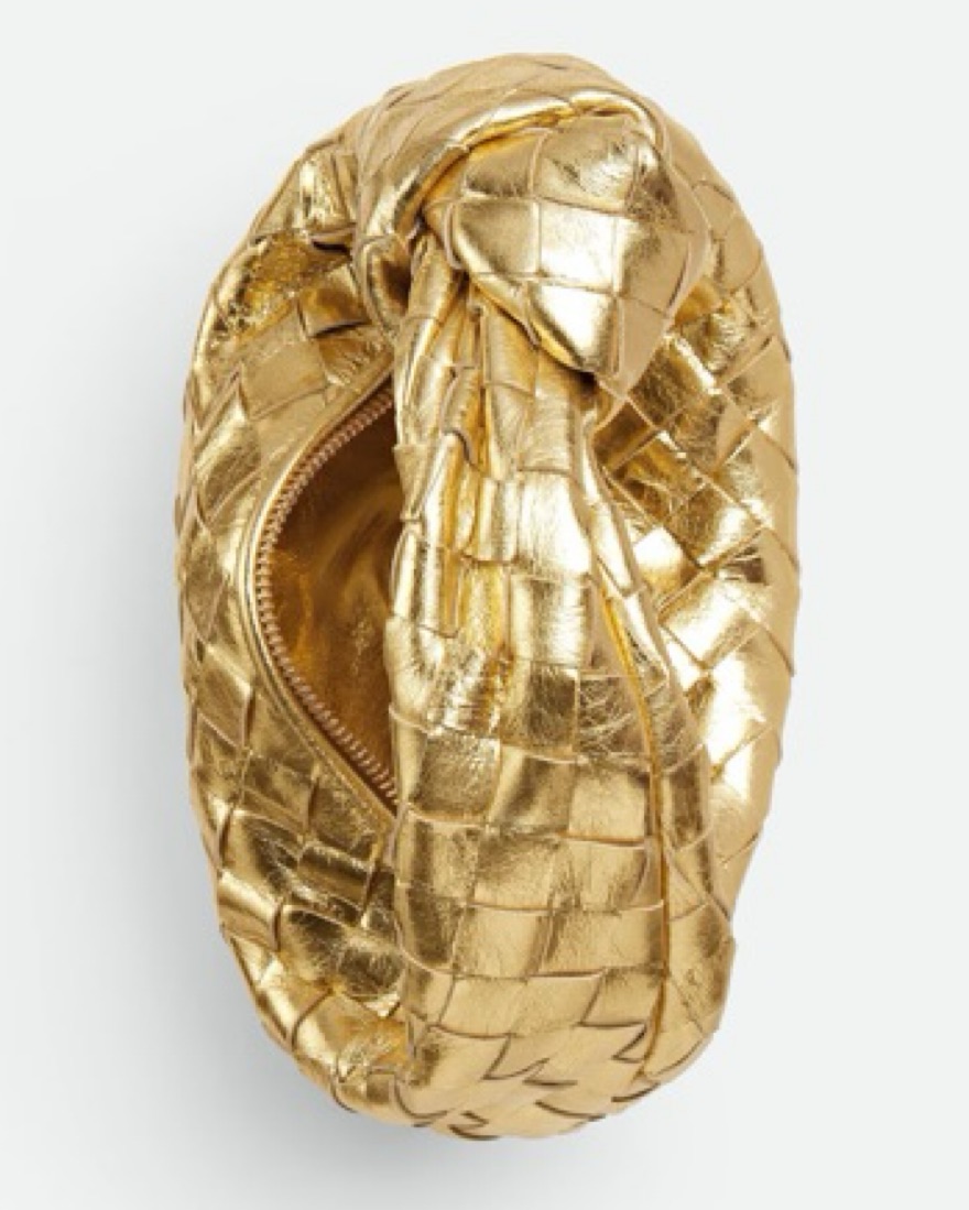 Top handle bag with rounded shape and signature knot in Intrecciato leather with foggy mirror effect. I’ve only used this bag twice for events—please handle it with care!