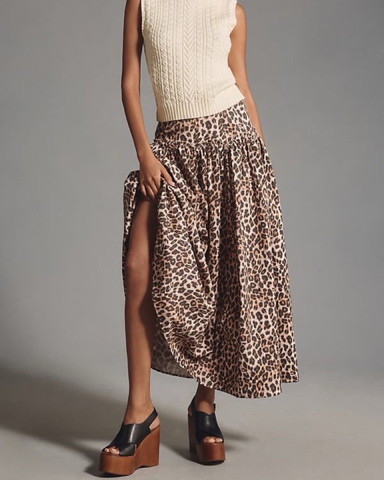 Mare Mare Drop Waist Leopard Skirt