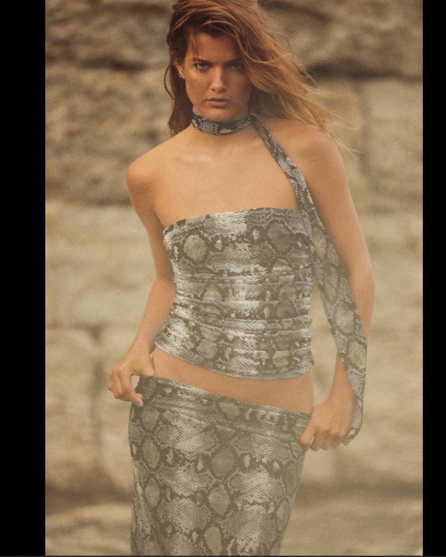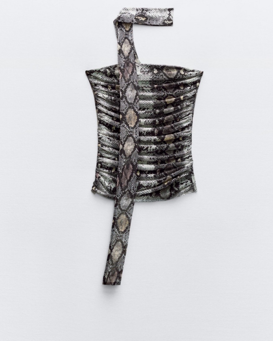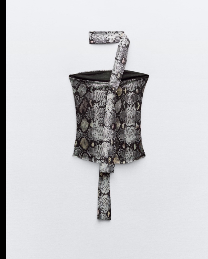 Zara Snake Tulle Neck Scarf Top S by Zara - Pickle