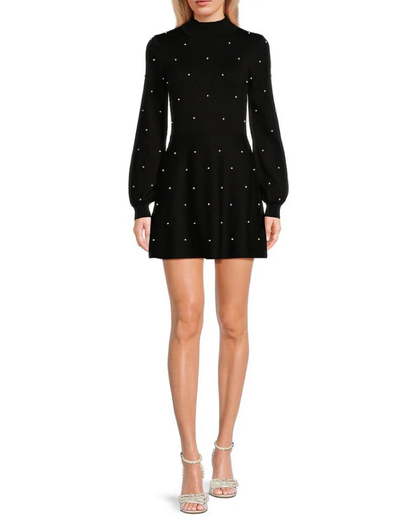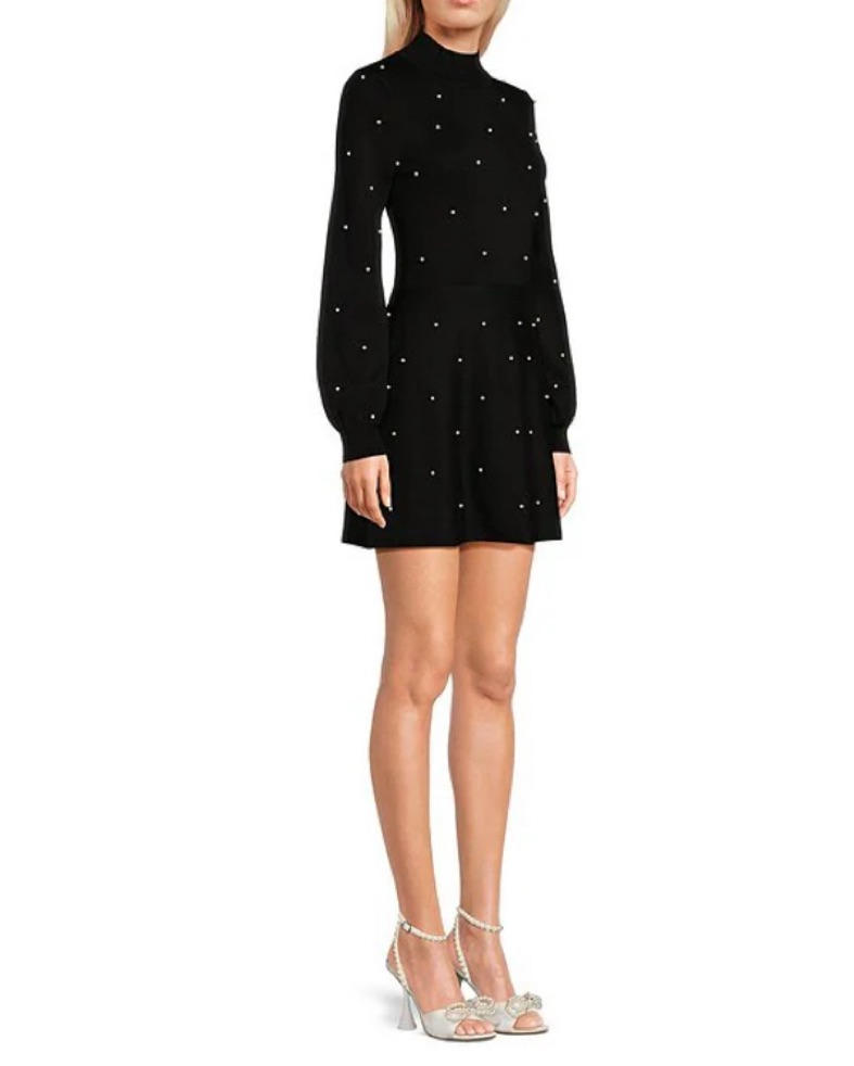 Black Long Sleeve Pearl Sweater Dress by Midnight Doll - Pickle