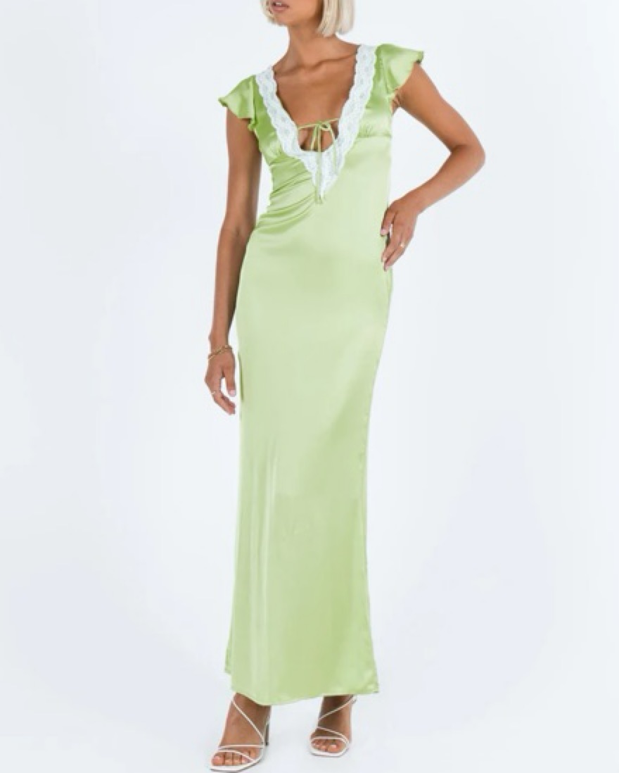 Princess Polly Armas Lace Trim Maxi Dres by Princess Polly - Pickle