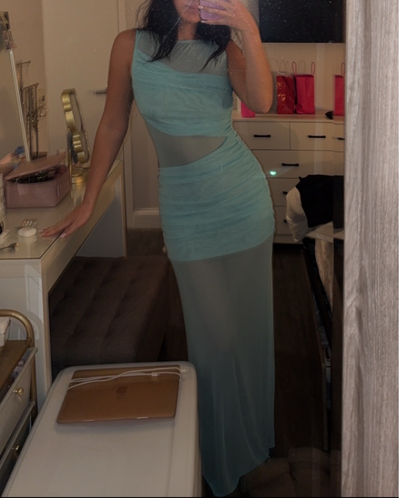 STUNNING teal blue dress for weddings or vacation :) never worn, in perfect condition. no under garments needed! very delicate please handle with care