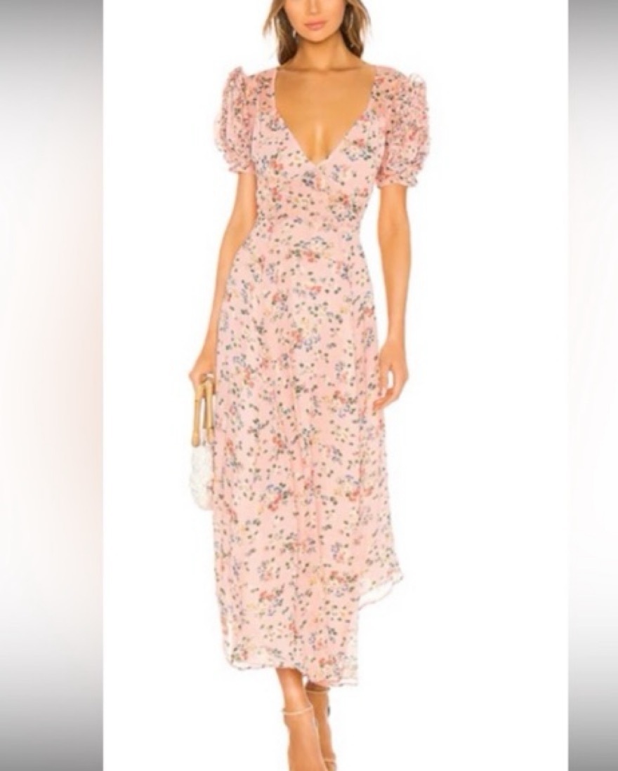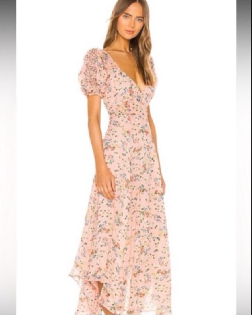 LoveShackFancy floral dress with puffy sleeves, great condition and no slip needed