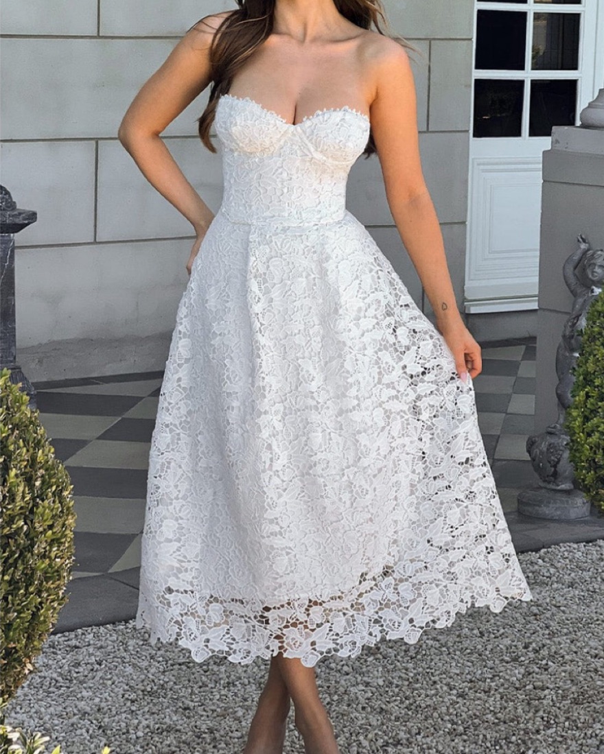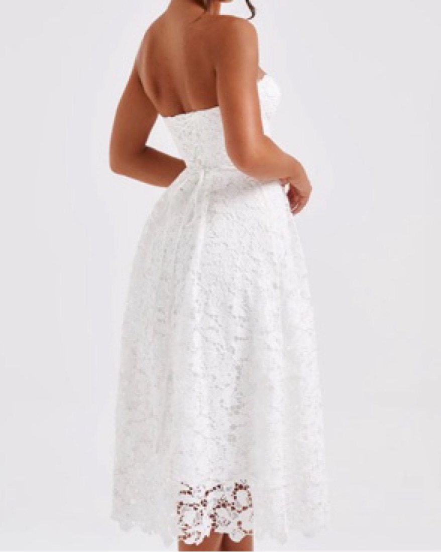 Perfect for bridal events or graduation! Back has corset detailing that can be tightened or loosened