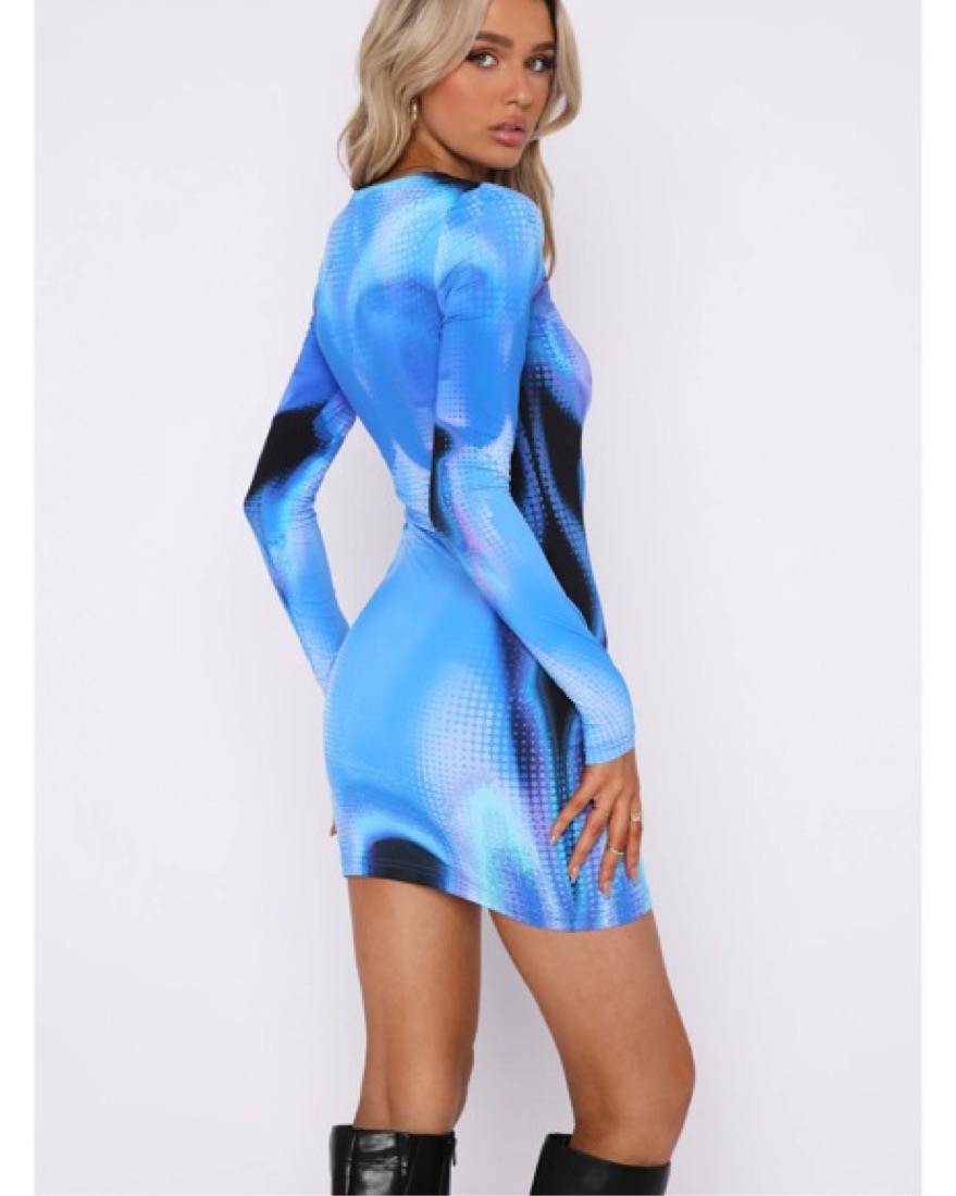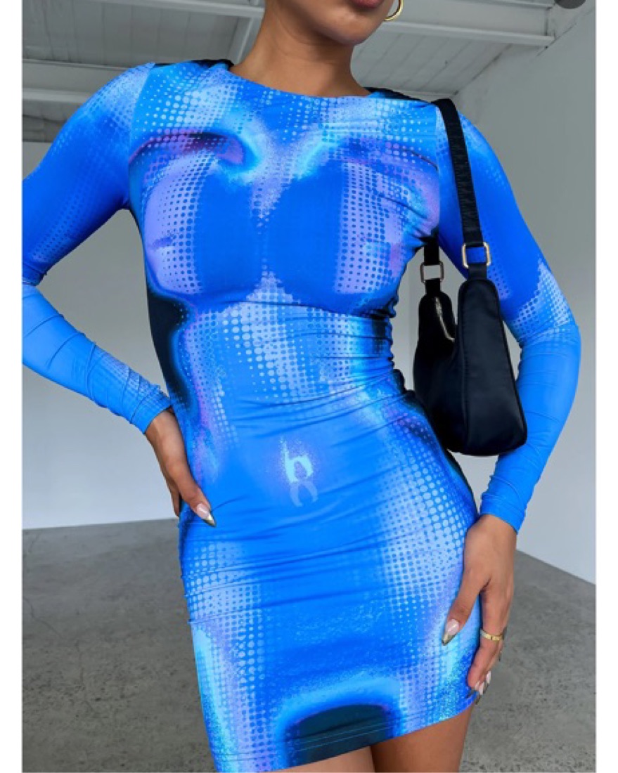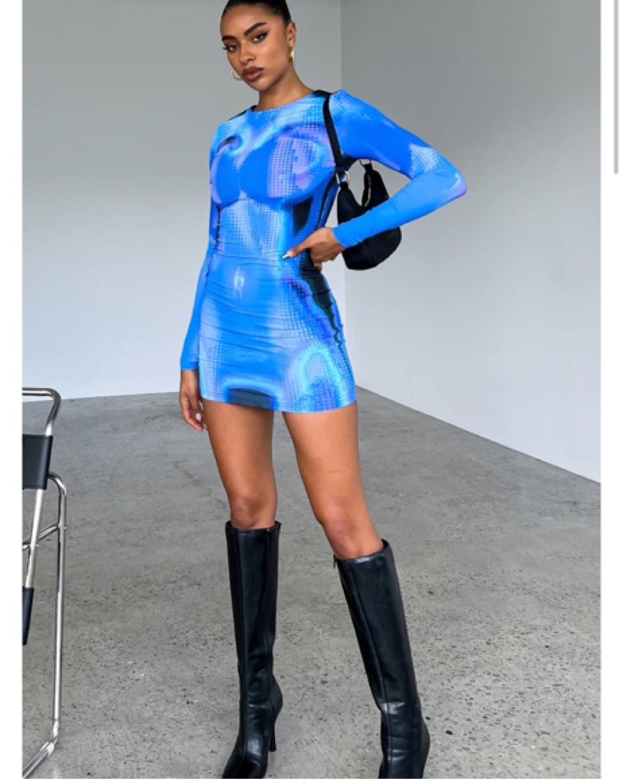 You'll look out of this world in the Soulmate Long Sleeve Mini Dress in Milky Way. Featuring long sleeves, high scooped neckline and lined, stretch fabric. Pair with simple accessories and knee-high boots for a dreamy look!