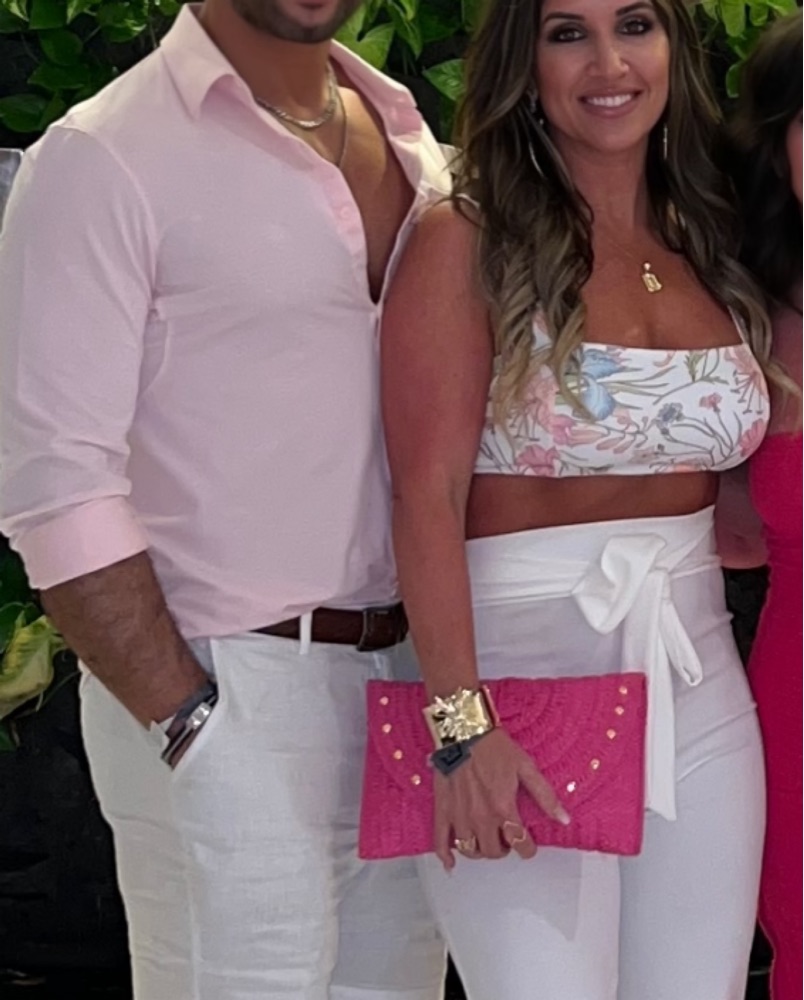 This stylish two-piece set is the perfect choice for a summer event or vacation. The floral crop top and high-waisted white palazzo pants create a chic and on-trend look.