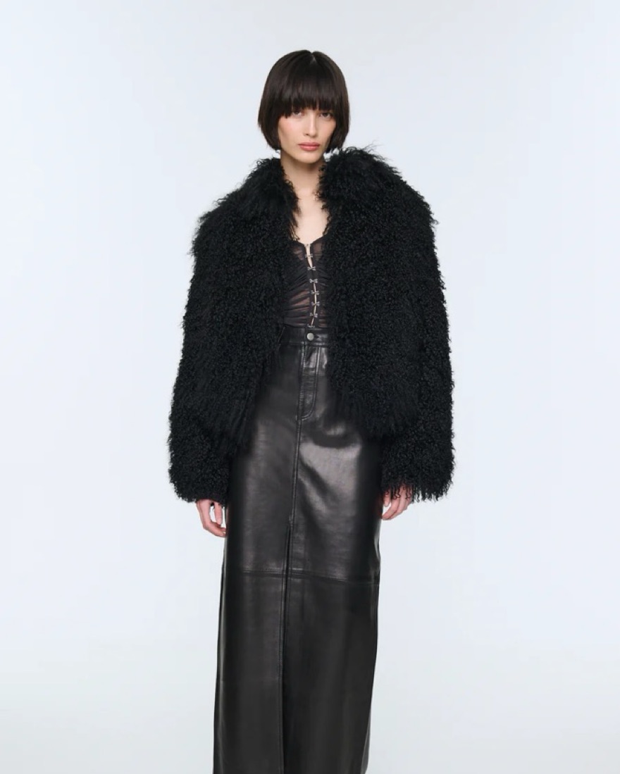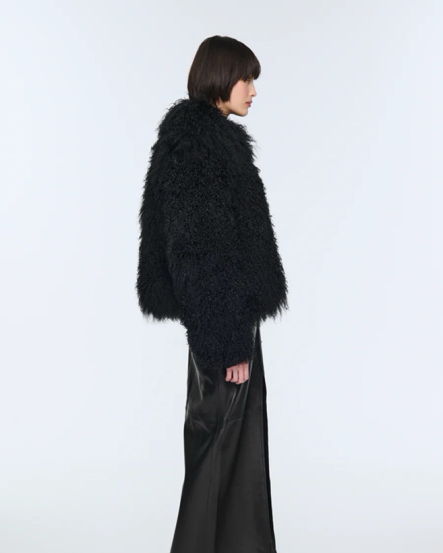 Real Mongolian sheepskin with eye hook closures. The most fabulous jacket you will ever wear!