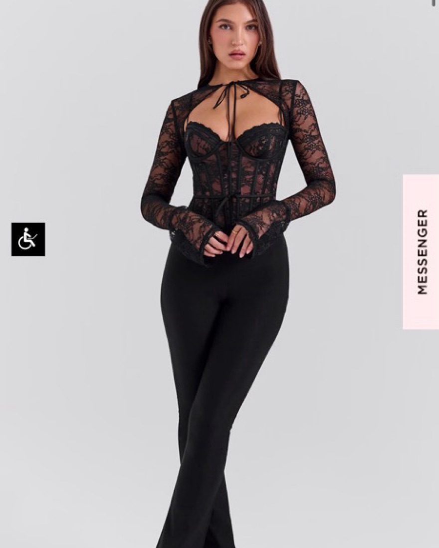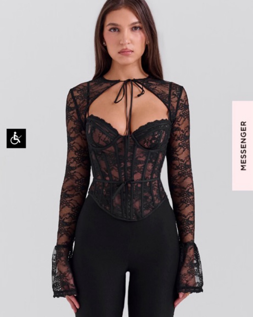 Introducing the enchanting 'Lisette' Long-Sleeved Lace Corset Top, a breathtaking blend of romance and allure. This exquisite piece features a delicate lace overlay that draws attention and admiration. The lightly lined cups provide gentle support, while the corset design sculpts your figure to perf