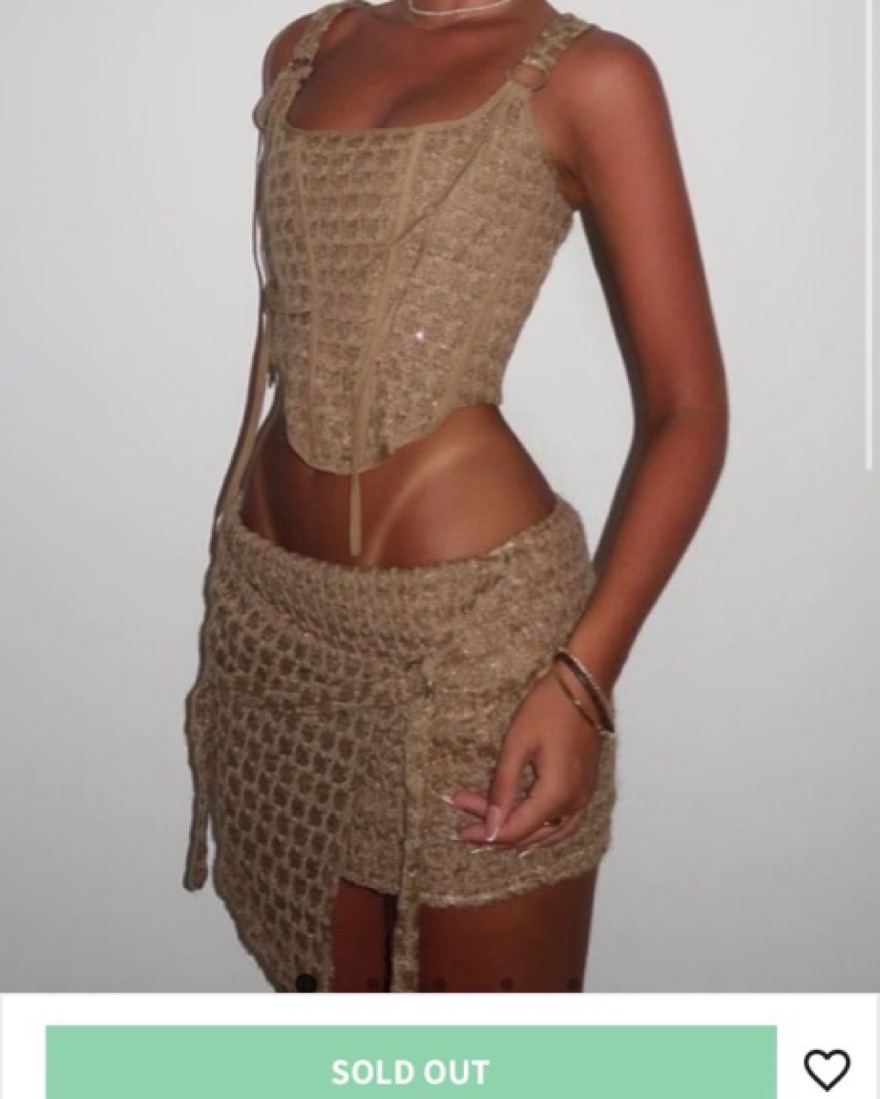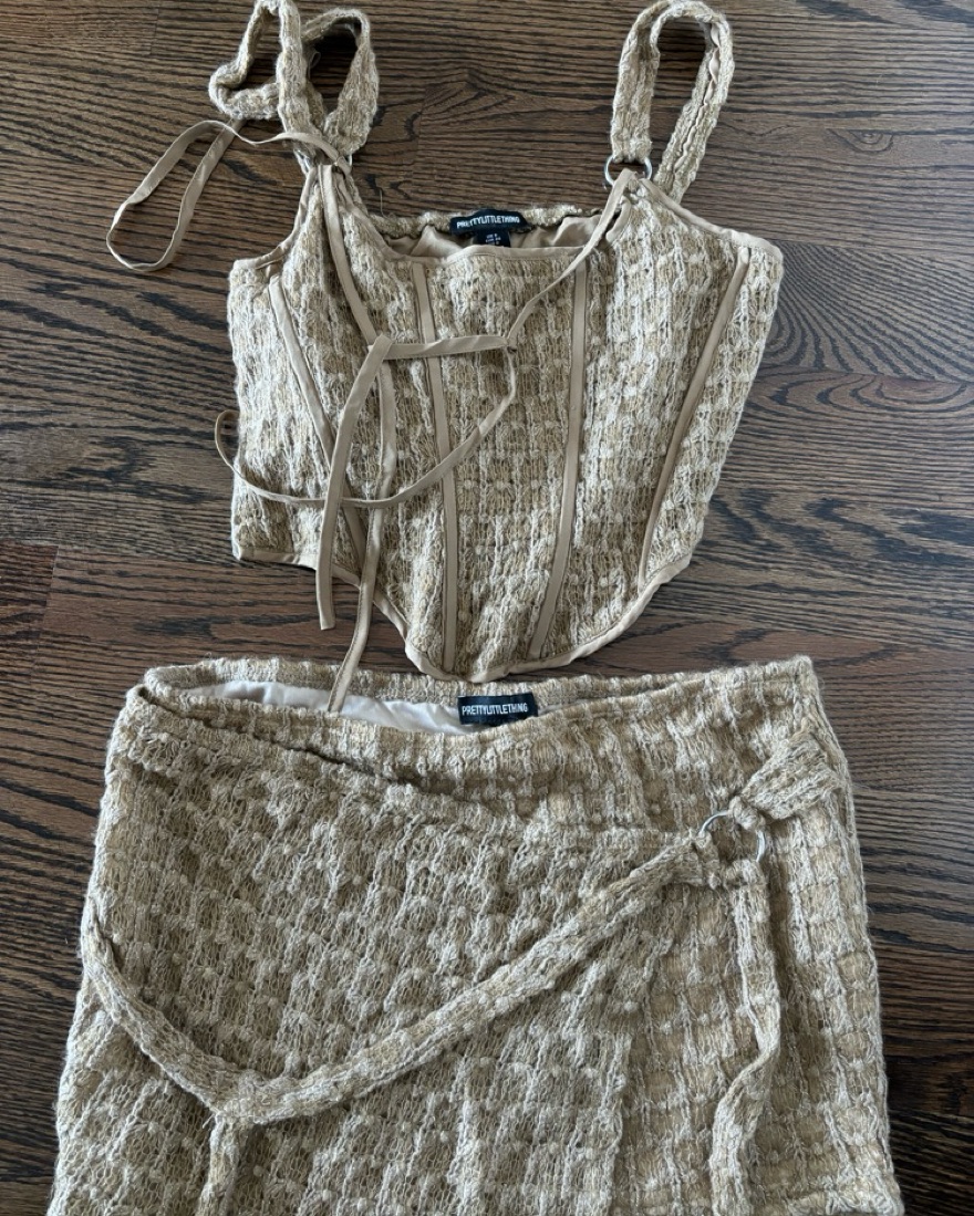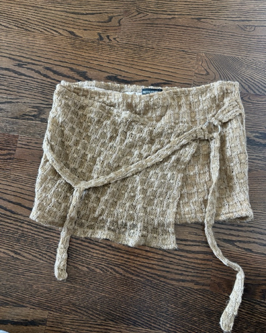 Pretty Little Thing tan and gold corset top & skirt set. O- ring detail. The first picture is the model on the website. I wore this one time and it has no damage basically brand new!
