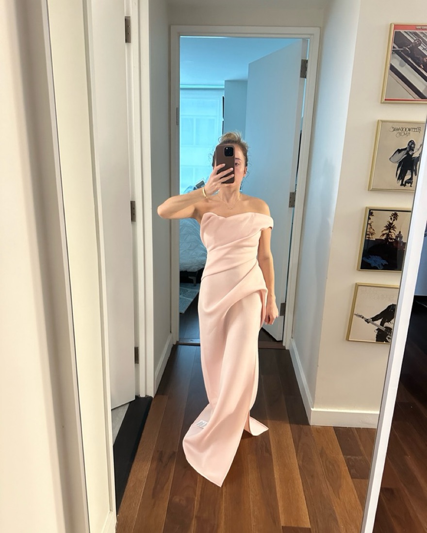 Hemmed to 5”2 height with 4.3 in heels. Would fit Neoprene type fabric, structrued. The most flattering comfortable dress!