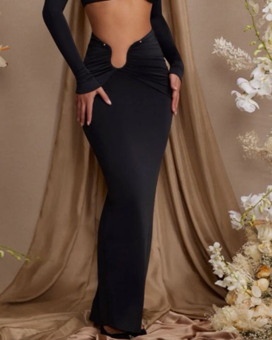 Oh polly TIANI Asymmetric Draped Maxi Skirt in Black